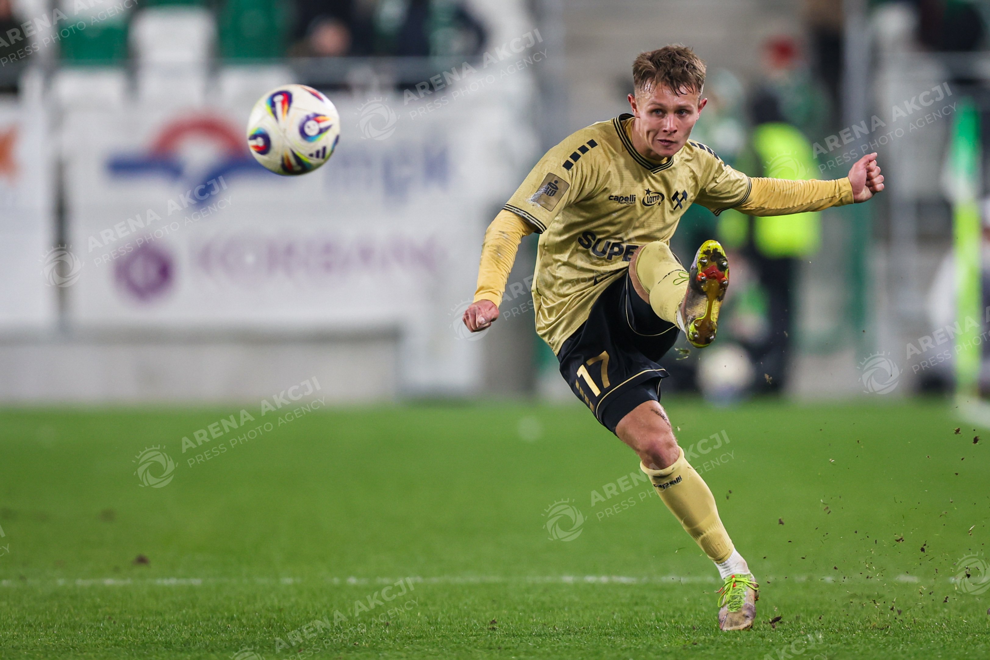 RADOM, POLAND - 28.11.2025: Kamil Lukoszek of Radomiak Radom competes for the ball during the PKO BP Ekstraklasa match against Gornik Zabrze. Photo: Igor Jakubowski / Action Stream