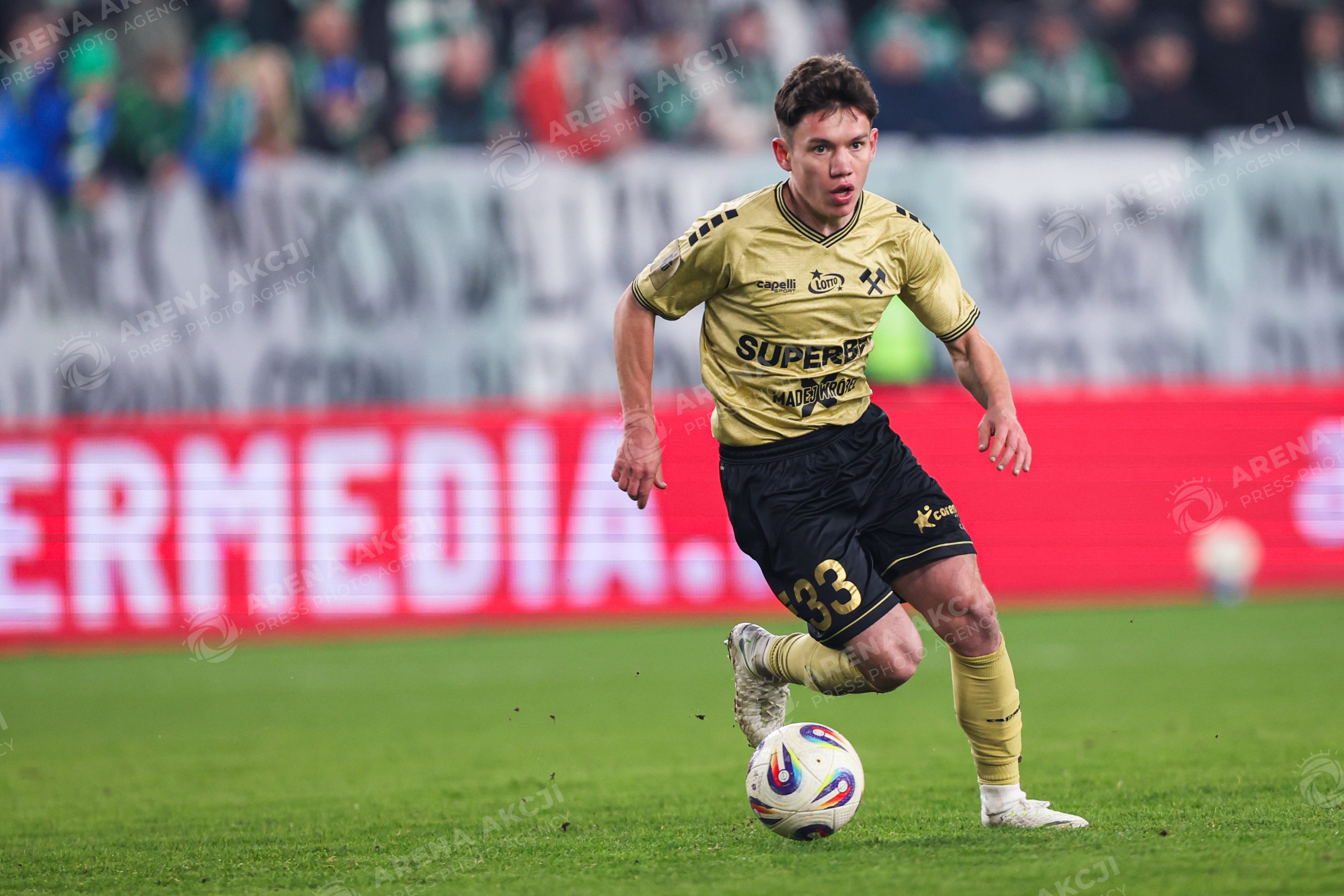 RADOM, POLAND - 28.11.2025: Maksym Khlan of Radomiak Radom competes for the ball during the PKO BP Ekstraklasa match against Gornik Zabrze. Photo: Igor Jakubowski / Action Stream