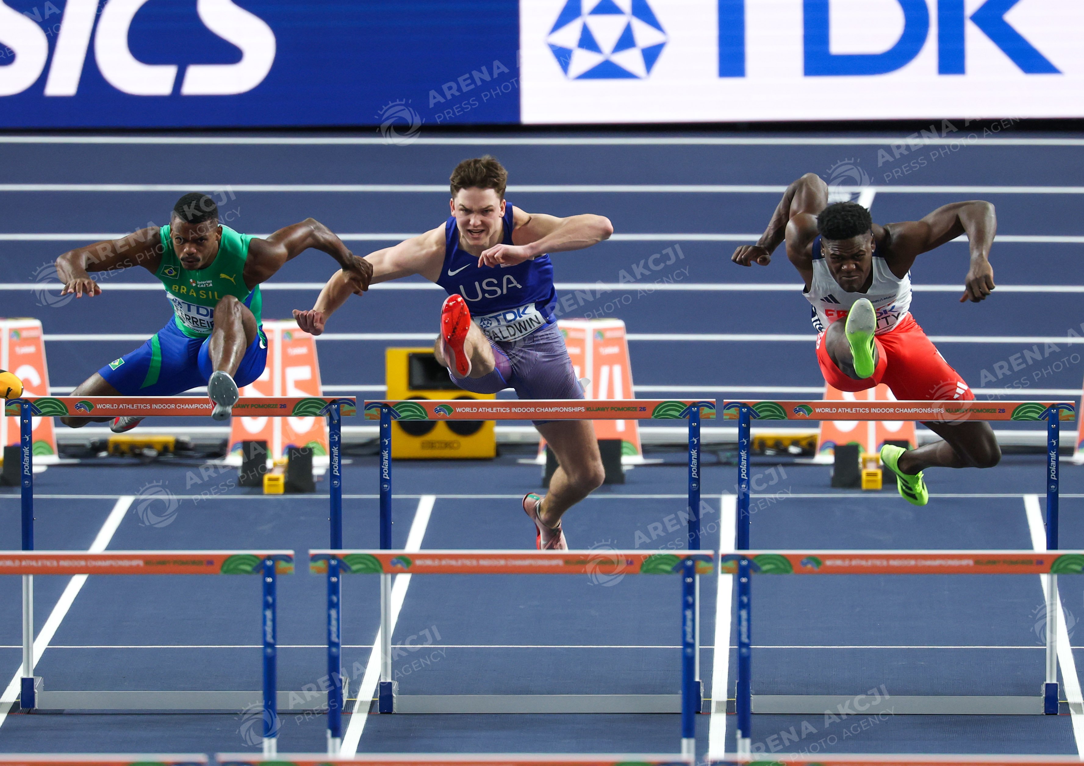 TORUN, POLAND - 21.03.2026: Heath Baldwin, Jose Fernando Ferreira, and Makenson Gletty compete during Day Two of the World Athletics Indoor Championship. Photo: Igor Jakubowski / Action Stream