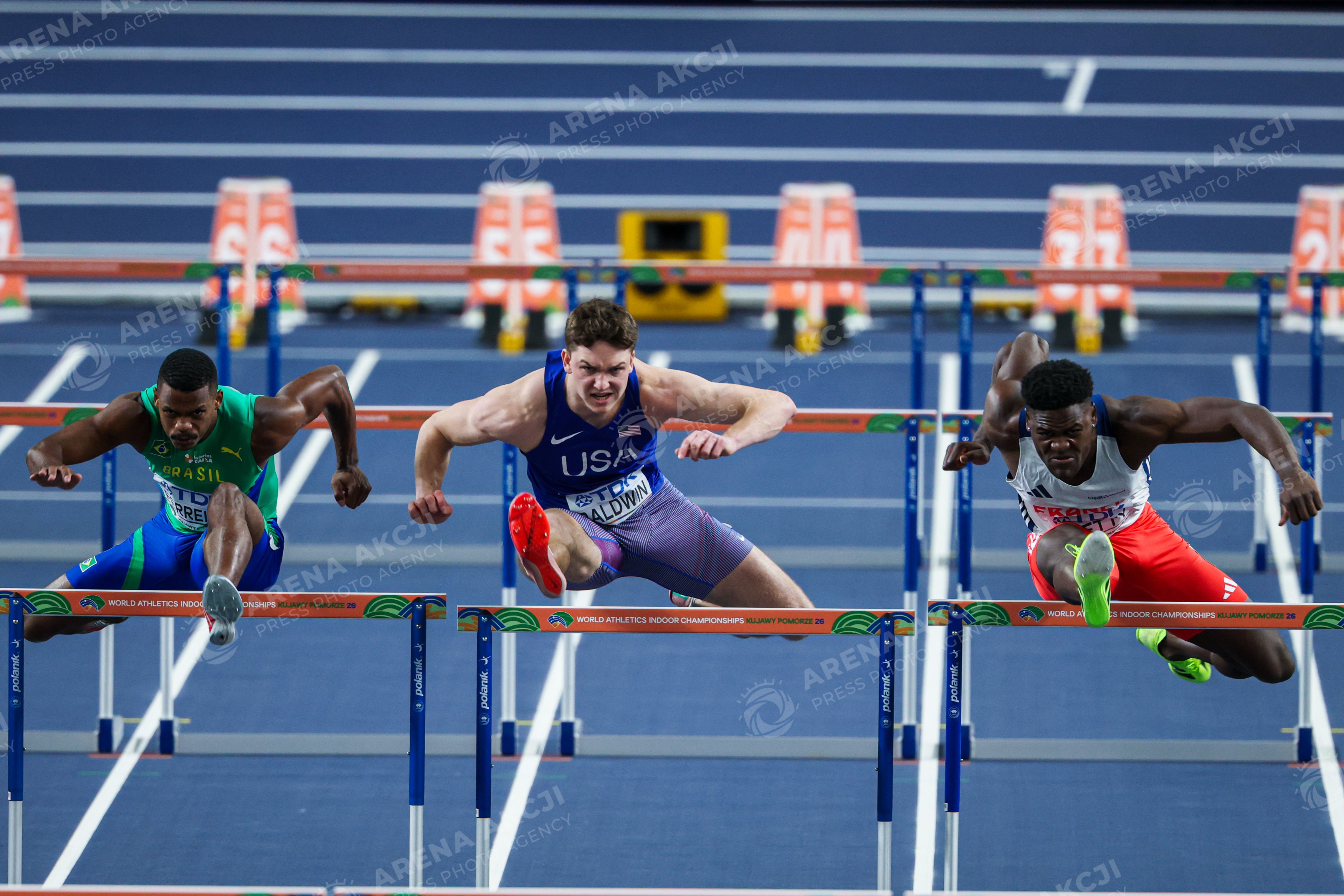 TORUN, POLAND - 21.03.2026: Heath Baldwin, Jose Fernando Ferreira, and Makenson Gletty compete during Day Two of the World Athletics Indoor Championship. Photo: Igor Jakubowski / Action Stream