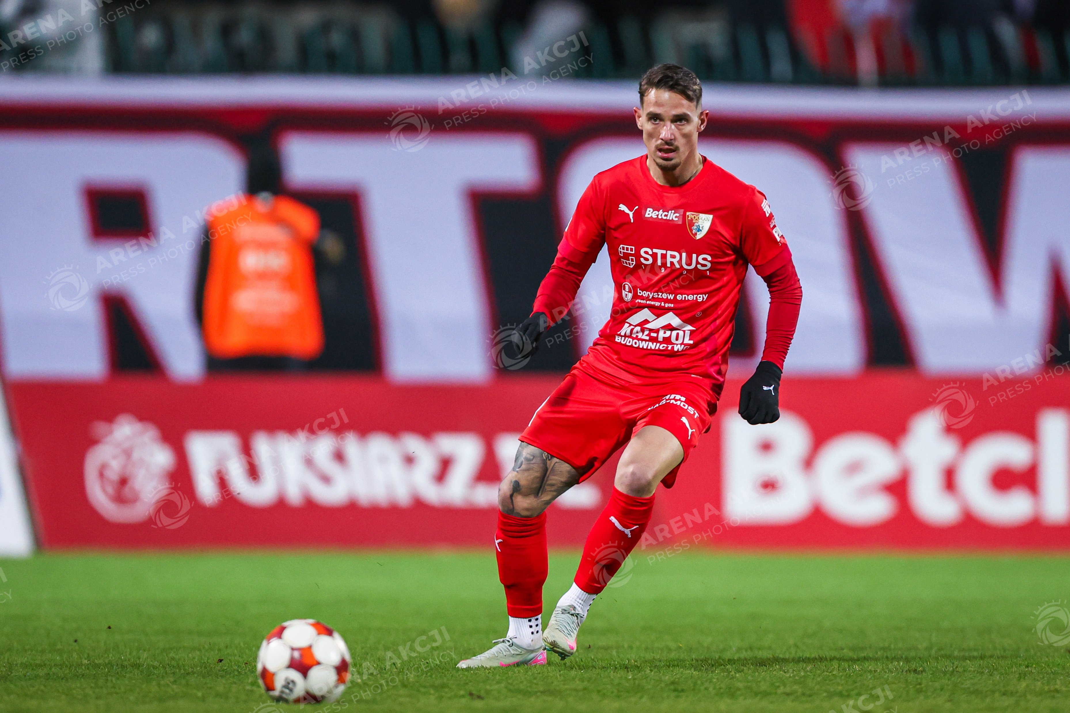 Warszawa 29.11.2025. Pilka nozna Betclic I Liga sezon 2025/2026 kolejka 18 mecz: Polonia Warszawa - Pogon Sielce --- Football Betclic I League season 2025/2026 round 18 match: Polonia Warsaw - Pogon Siedlce nz Ernest Dzieciol sylwetka Fot. Igor Jakubowski / Arena Akcji