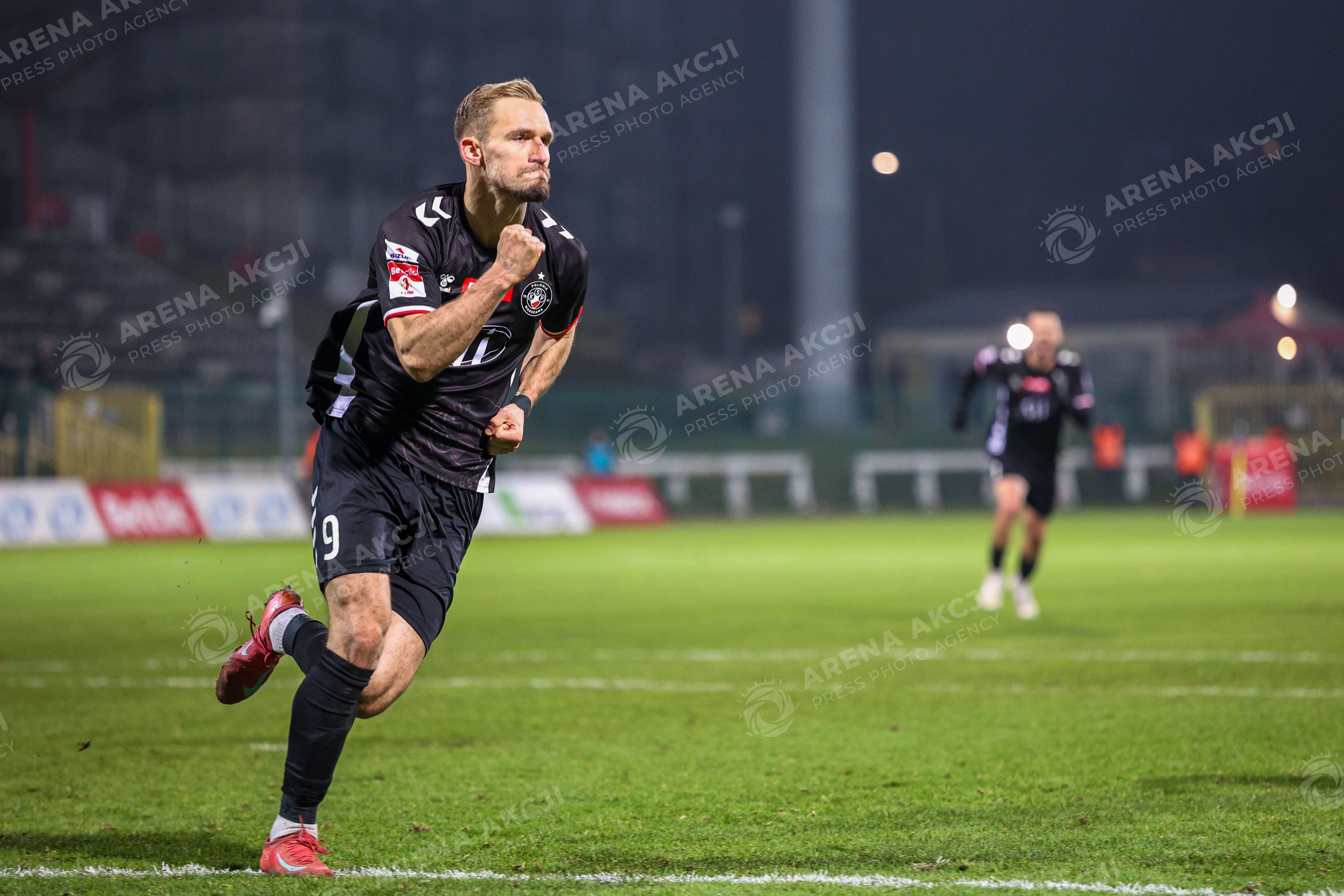 Warszawa 29.11.2025. Pilka nozna Betclic I Liga sezon 2025/2026 kolejka 18 mecz: Polonia Warszawa - Pogon Sielce --- Football Betclic I League season 2025/2026 round 18 match: Polonia Warsaw - Pogon Siedlce nz Lukasz Zjawinski radosc bramka gol punkt emocje Fot. Igor Jakubowski / Arena Akcji
