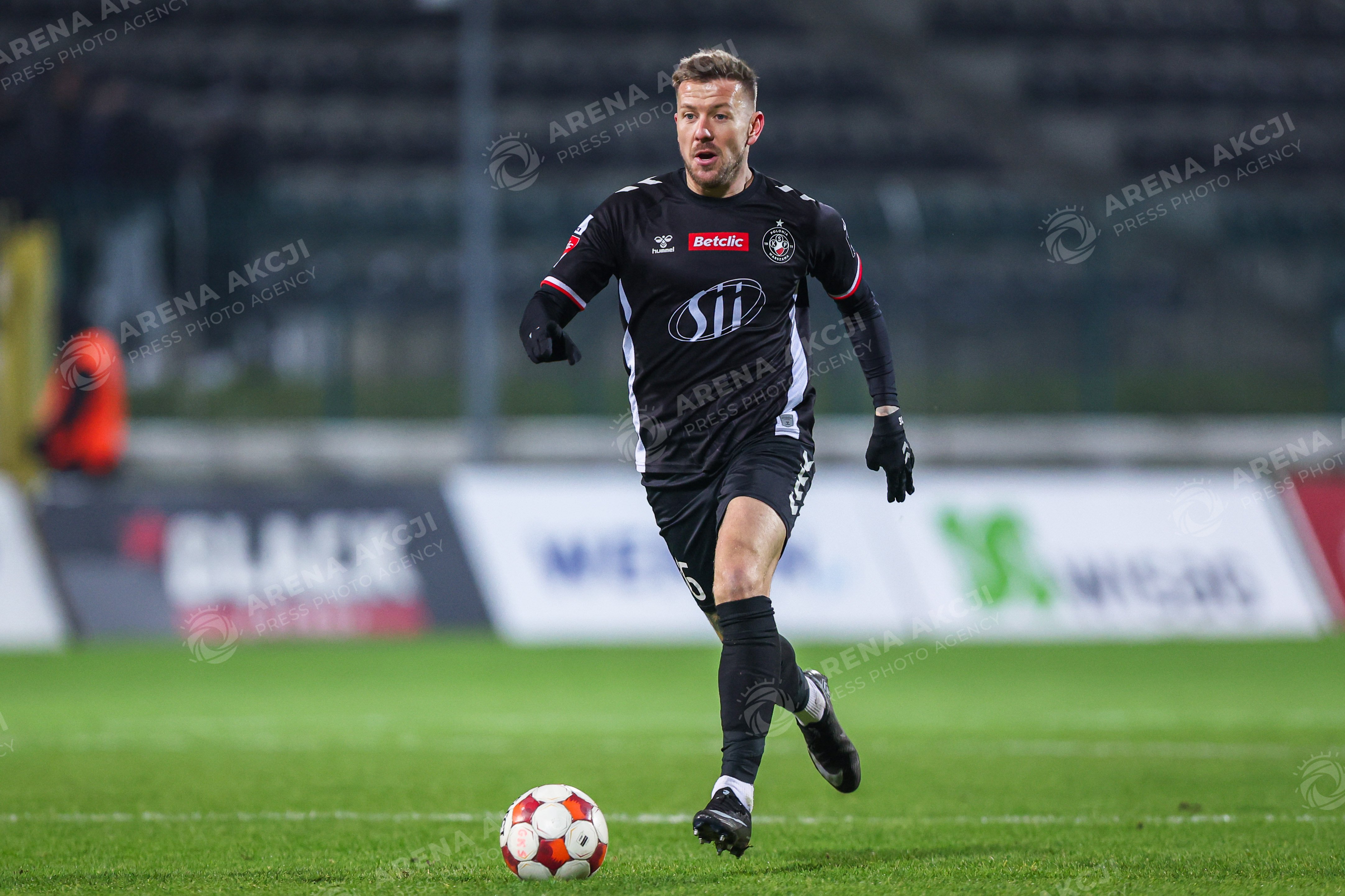 Warszawa 29.11.2025. Pilka nozna Betclic I Liga sezon 2025/2026 kolejka 18 mecz: Polonia Warszawa - Pogon Sielce --- Football Betclic I League season 2025/2026 round 18 match: Polonia Warsaw - Pogon Siedlce nz Bartlomiej Poczobut sylwetka Fot. Igor Jakubowski / Arena Akcji