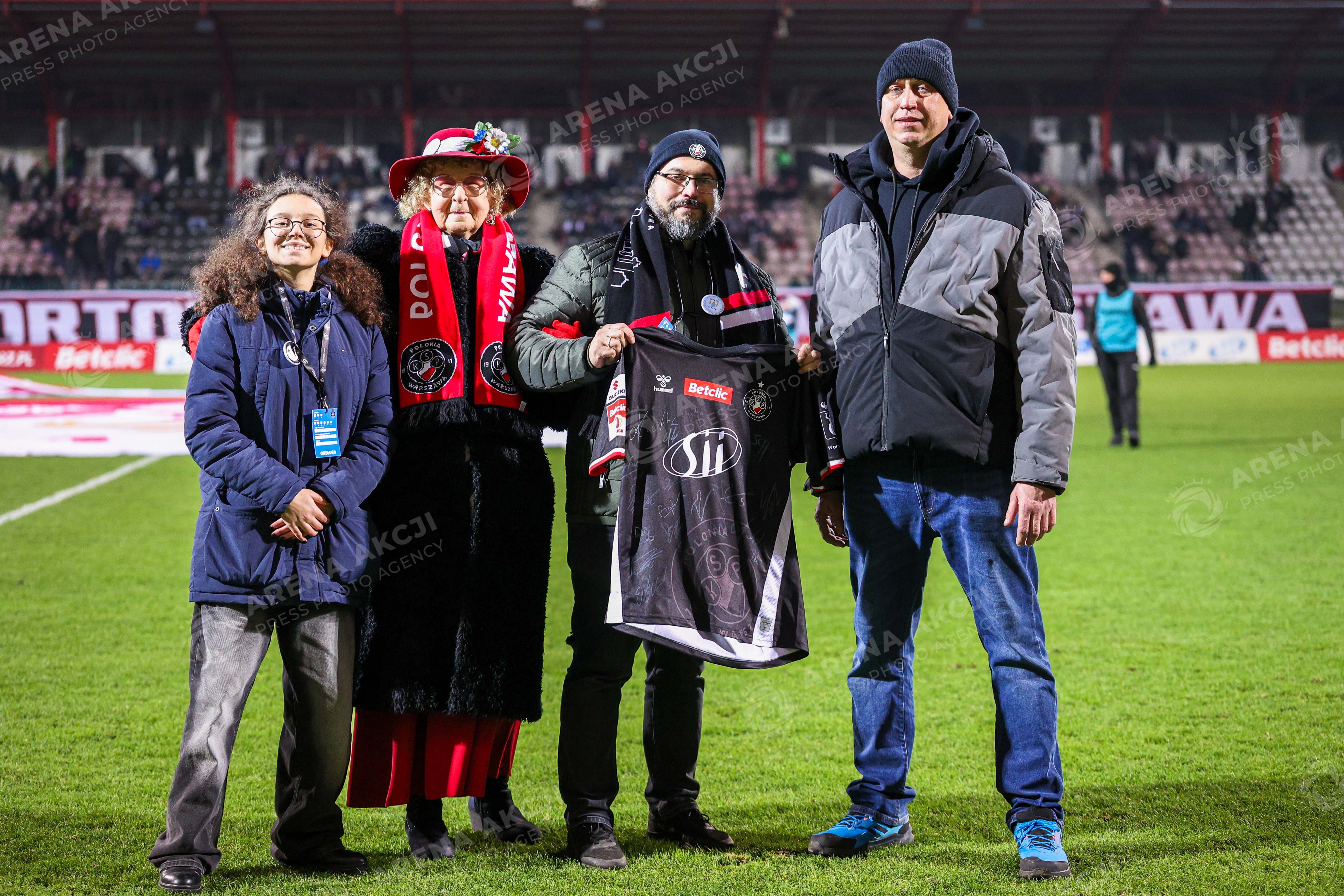 Warszawa 29.11.2025. Pilka nozna Betclic I Liga sezon 2025/2026 kolejka 18 mecz: Polonia Warszawa - Pogon Sielce --- Football Betclic I League season 2025/2026 round 18 match: Polonia Warsaw - Pogon Siedlce nz rozdanie koszulku Fot. Igor Jakubowski / Arena Akcji