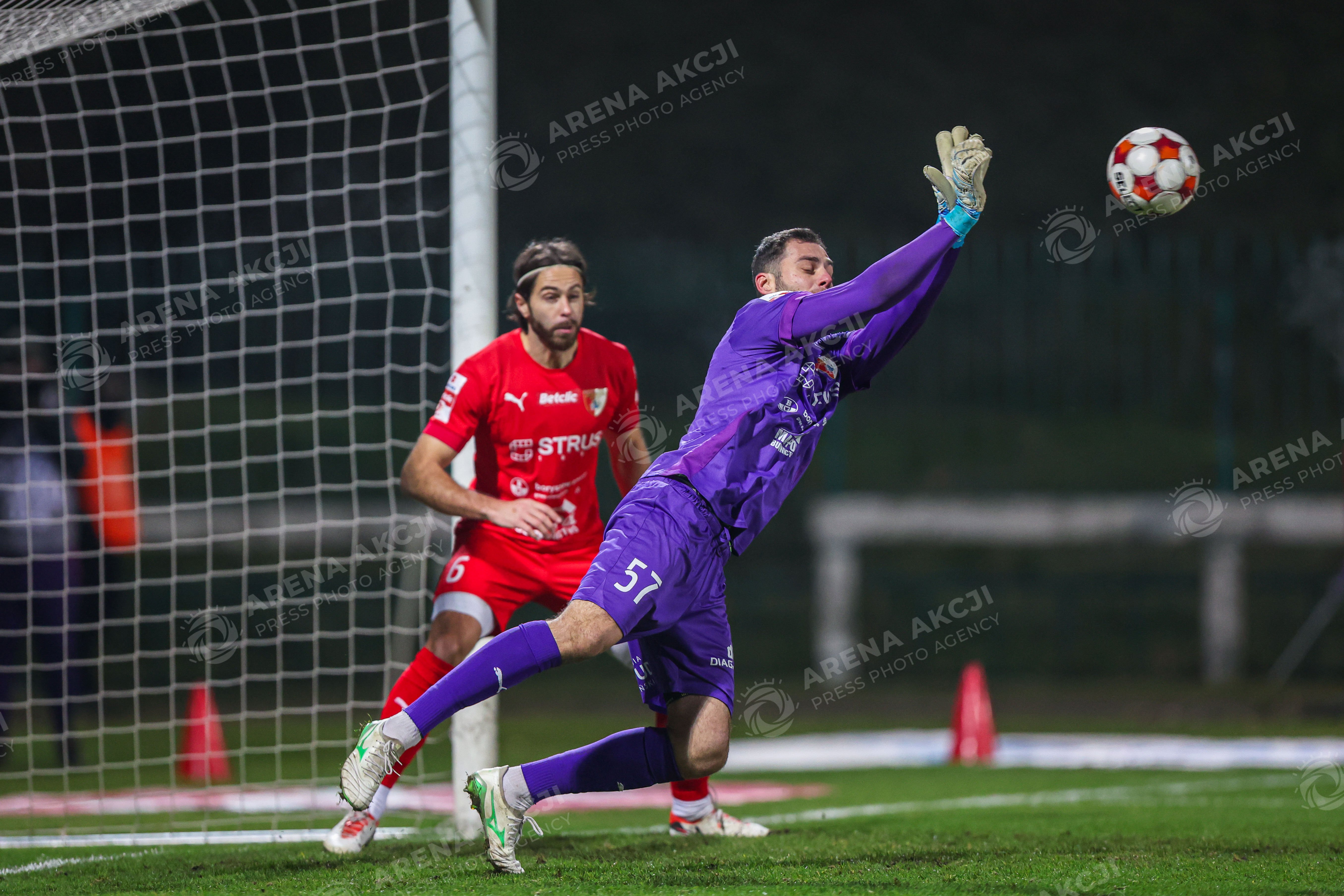 Warszawa 29.11.2025. Pilka nozna Betclic I Liga sezon 2025/2026 kolejka 18 mecz: Polonia Warszawa - Pogon Sielce --- Football Betclic I League season 2025/2026 round 18 match: Polonia Warsaw - Pogon Siedlce nz Jakub Lemanowicz interwencja obrona Fot. Igor Jakubowski / Arena Akcji