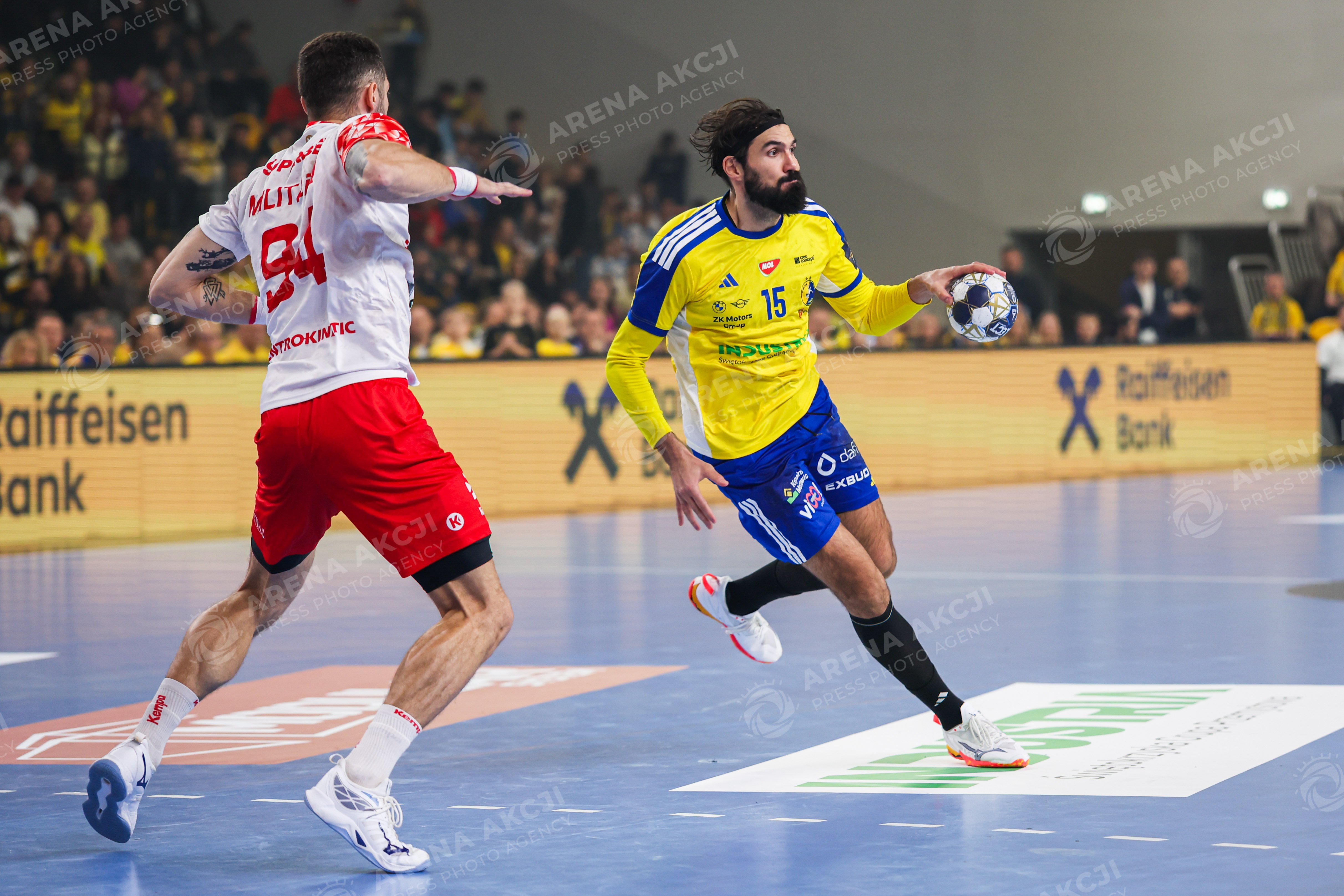 Kielce 26.11.2025. Pilka reczna liga mistrzow sezon 2025/2026 kolejka 10 mecz : Industria Kielce - Dynamo Bukareszt --- Handball EHF Champions League season 2025/2026 match : Industria Kielce - Dinamo Bucuresti nz jorge maqueda peno Fot. Igor Jakubowski / Arena Akcji