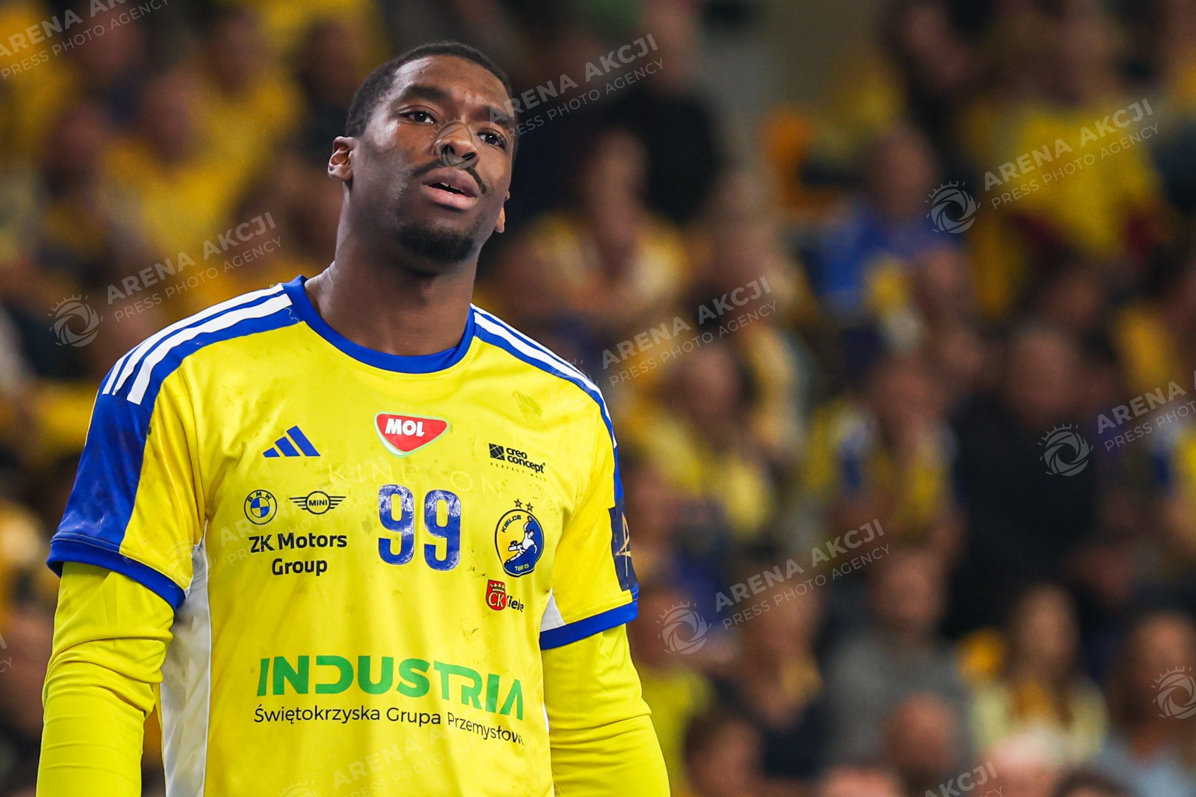 Kielce 26.11.2025. Pilka reczna liga mistrzow sezon 2025/2026 kolejka 10 mecz : Industria Kielce - Dynamo Bukareszt --- Handball EHF Champions League season 2025/2026 match : Industria Kielce - Dinamo Bucuresti nz dylan nahi smutek Fot. Igor Jakubowski / Arena Akcji