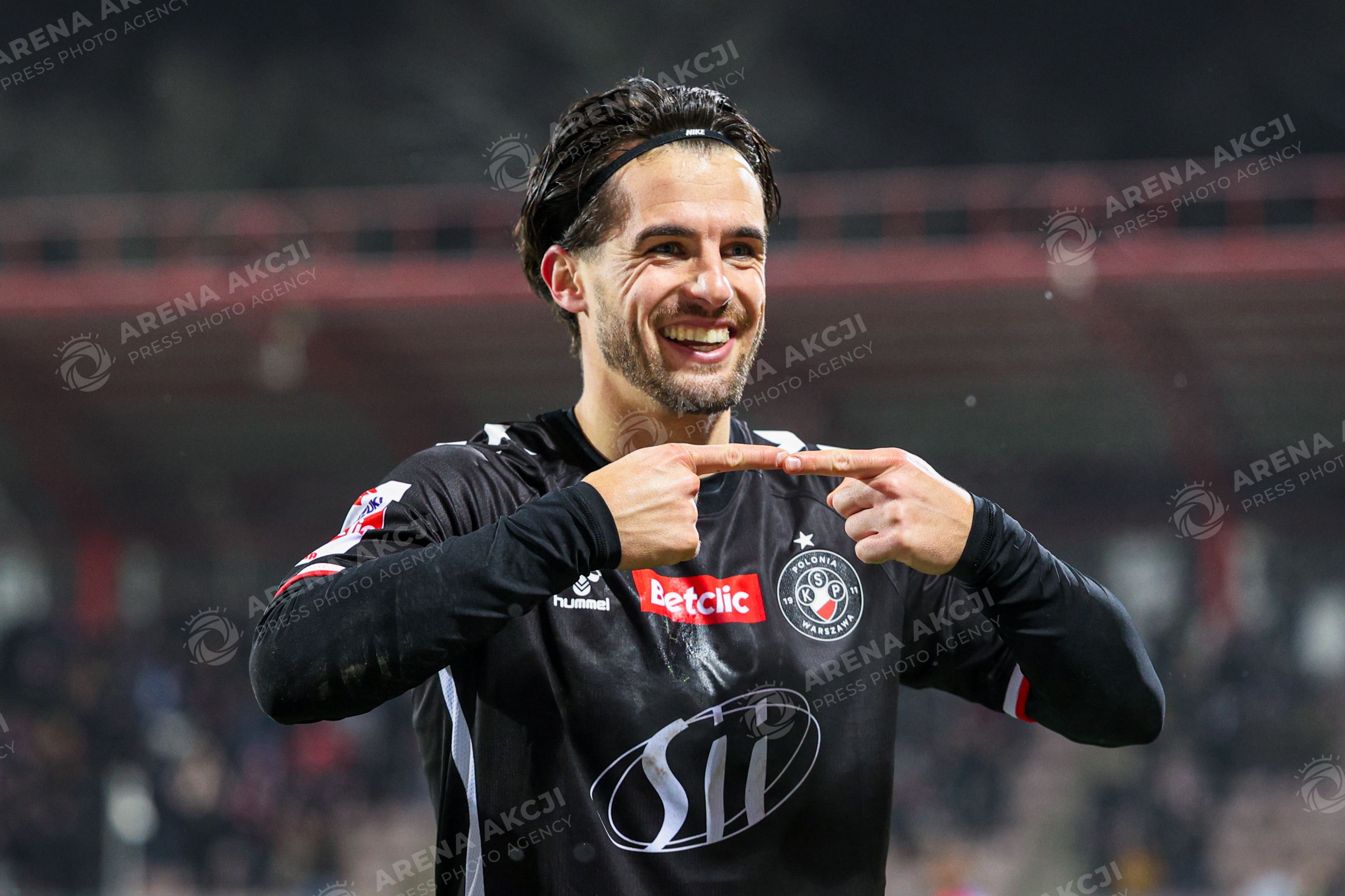 Warszawa 23.11.2025. Pilka nozna Betclic I Liga sezon 2025/2026 kolejka 17 mecz: Polonia Warszawa - Odra Opole --- Football Betclic I League season 2025/2026 round 17 match: Polonia Warsaw - Odra Opole nz Dani Vega radosc bramka gol punkt emocje Fot. Igor Jakubowski / Arena Akcji