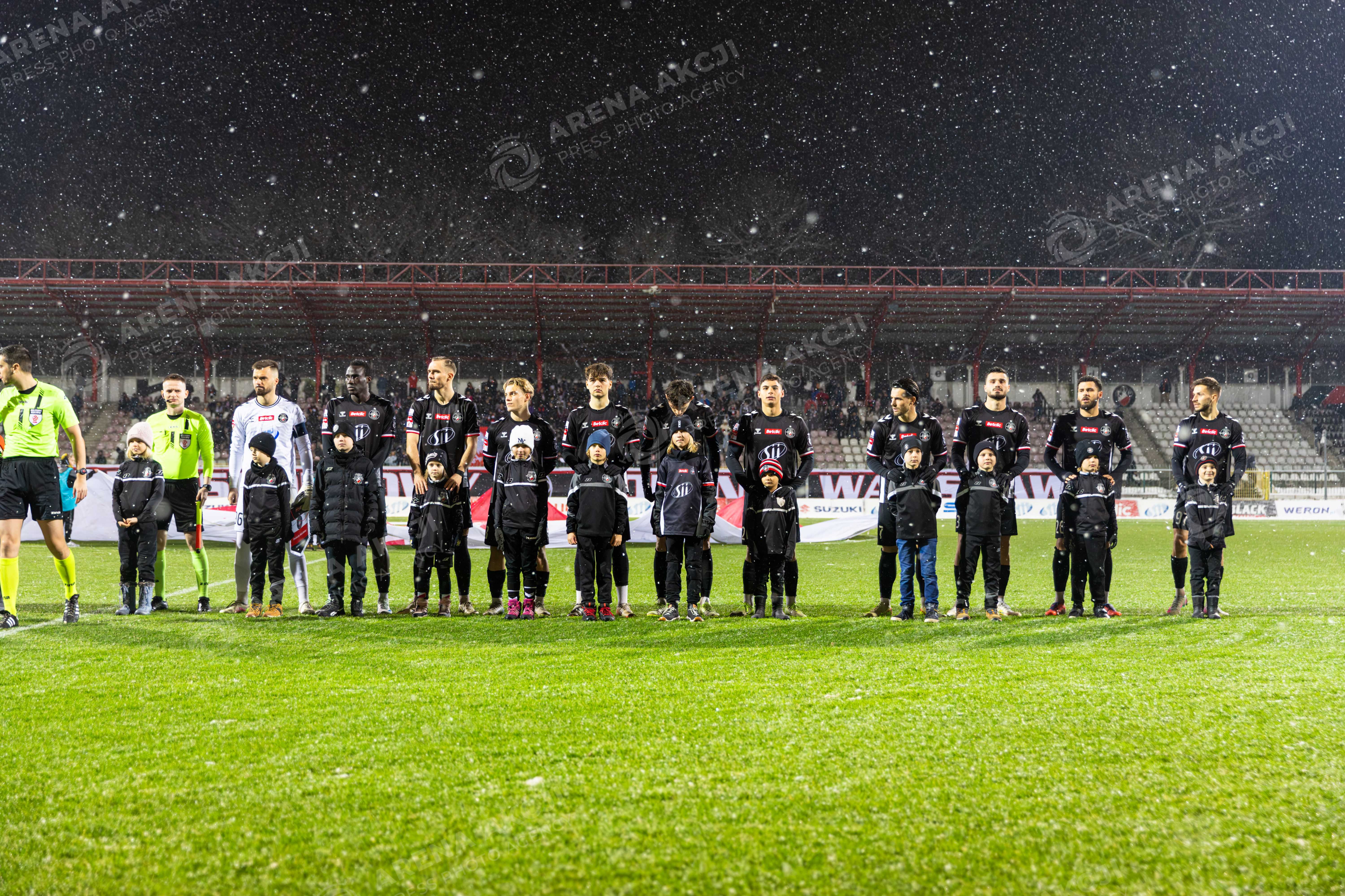 Warszawa 23.11.2025. Pilka nozna Betclic I Liga sezon 2025/2026 kolejka 17 mecz: Polonia Warszawa - Odra Opole --- Football Betclic I League season 2025/2026 round 17 match: Polonia Warsaw - Odra Opole nz prezentacja zawodnikow wyjscie na boisko Fot. Igor Jakubowski / Arena Akcji