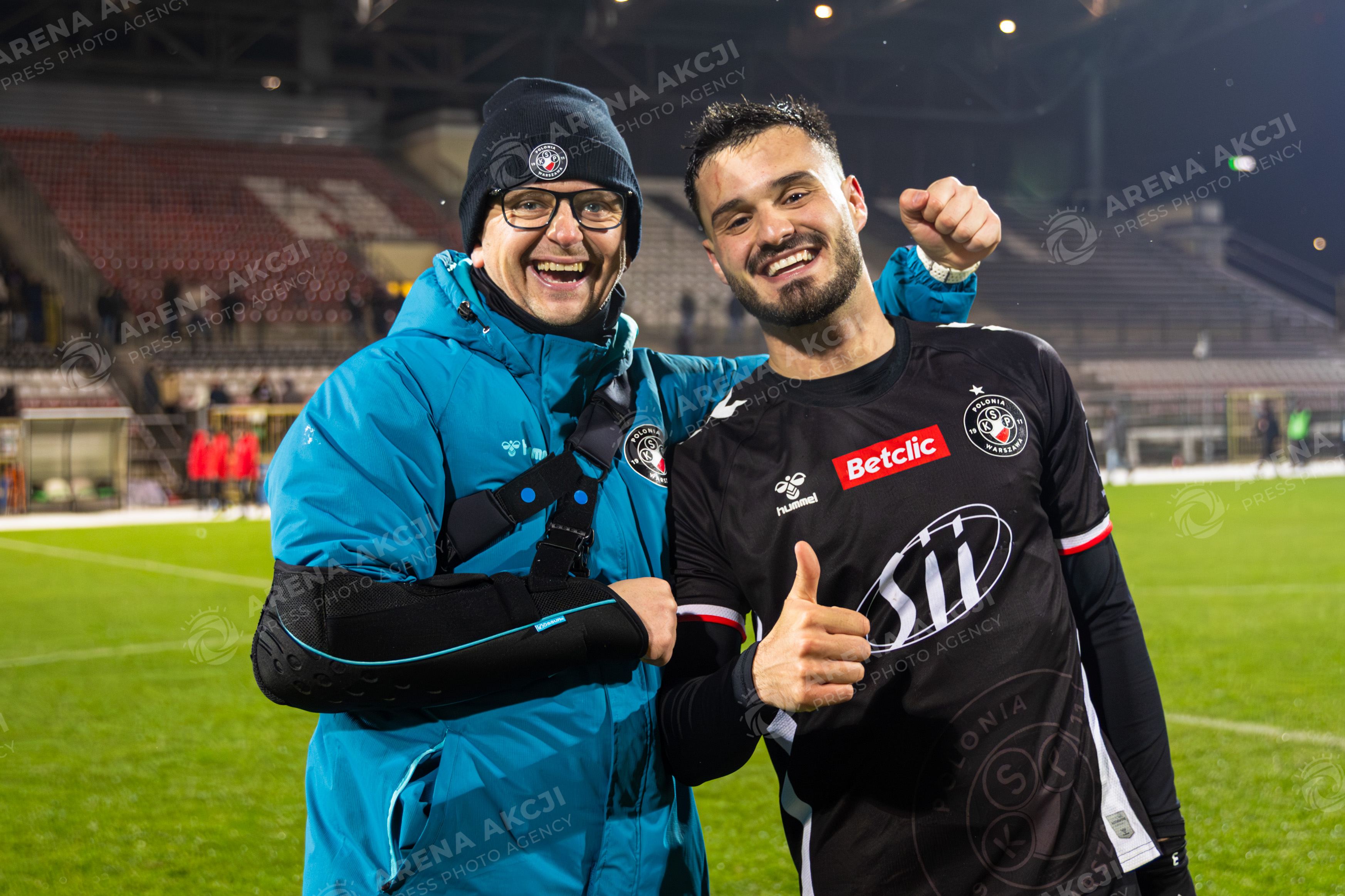 Warszawa 23.11.2025. Pilka nozna Betclic I Liga sezon 2025/2026 kolejka 17 mecz: Polonia Warszawa - Odra Opole --- Football Betclic I League season 2025/2026 round 17 match: Polonia Warsaw - Odra Opole nz Maciej Bagrowski Erion Hoxhallari Fot. Igor Jakubowski / Arena Akcji