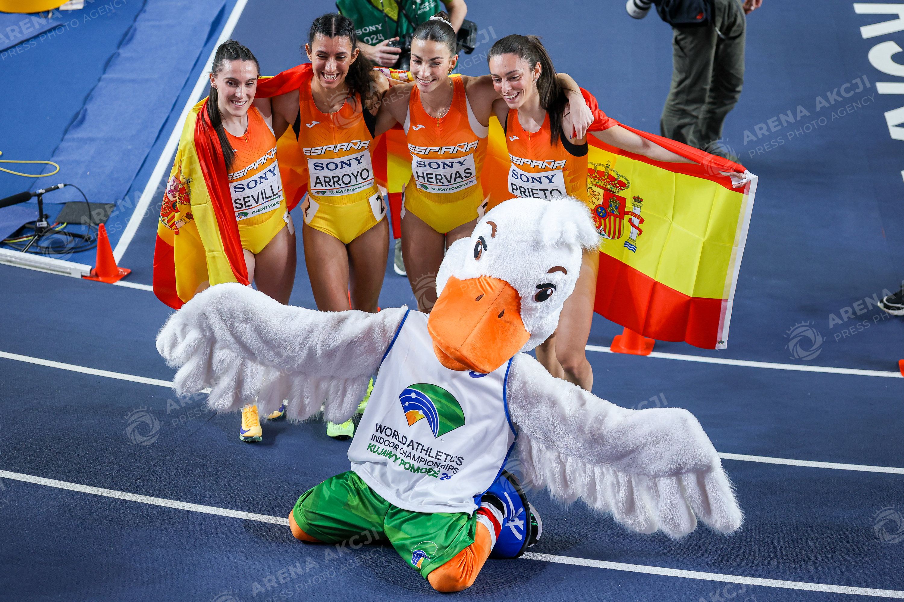 Torun 22.03.2026 World Athletics Indoor Championship Kujawy Pomorze 2026 in Torun, Poland Day Two Halowe Mistrzostwa Swiata Torun 2026 Dzien trzeci n/z Paula Sevilla Rocio Arroyo Blanca Hercas Ana Prieto Fot. Igor Jakubowski / Arena Akcji