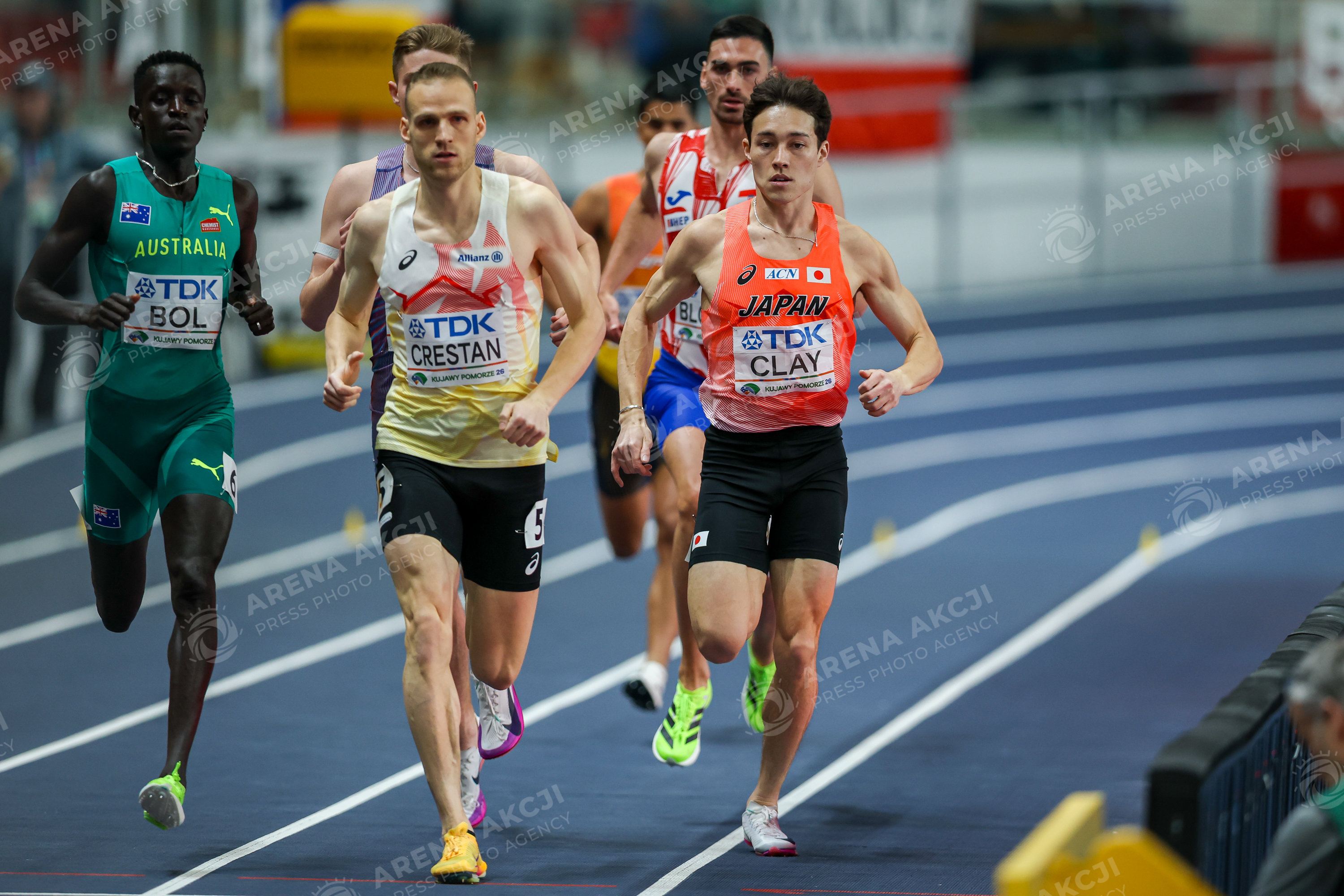 Torun 22.03.2026 World Athletics Indoor Championship Kujawy Pomorze 2026 in Torun, Poland Day Two Halowe Mistrzostwa Swiata Torun 2026 Dzien trzeci n/z PEter Bol Eliott Crestan Allon Tatsunami Clay Fot. Igor Jakubowski / Arena Akcji