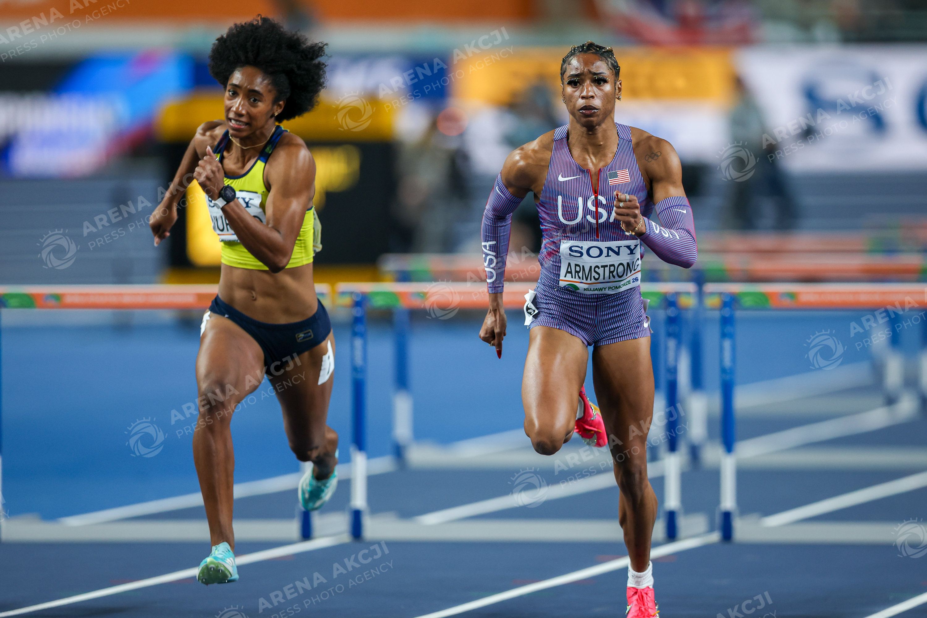 Torun 22.03.2026 World Athletics Indoor Championship Kujawy Pomorze 2026 in Torun, Poland Day Two Halowe Mistrzostwa Swiata Torun 2026 Dzien trzeci n/z Maria Fernanda Murillo Alia Armstrong Fot. Igor Jakubowski / Arena Akcji