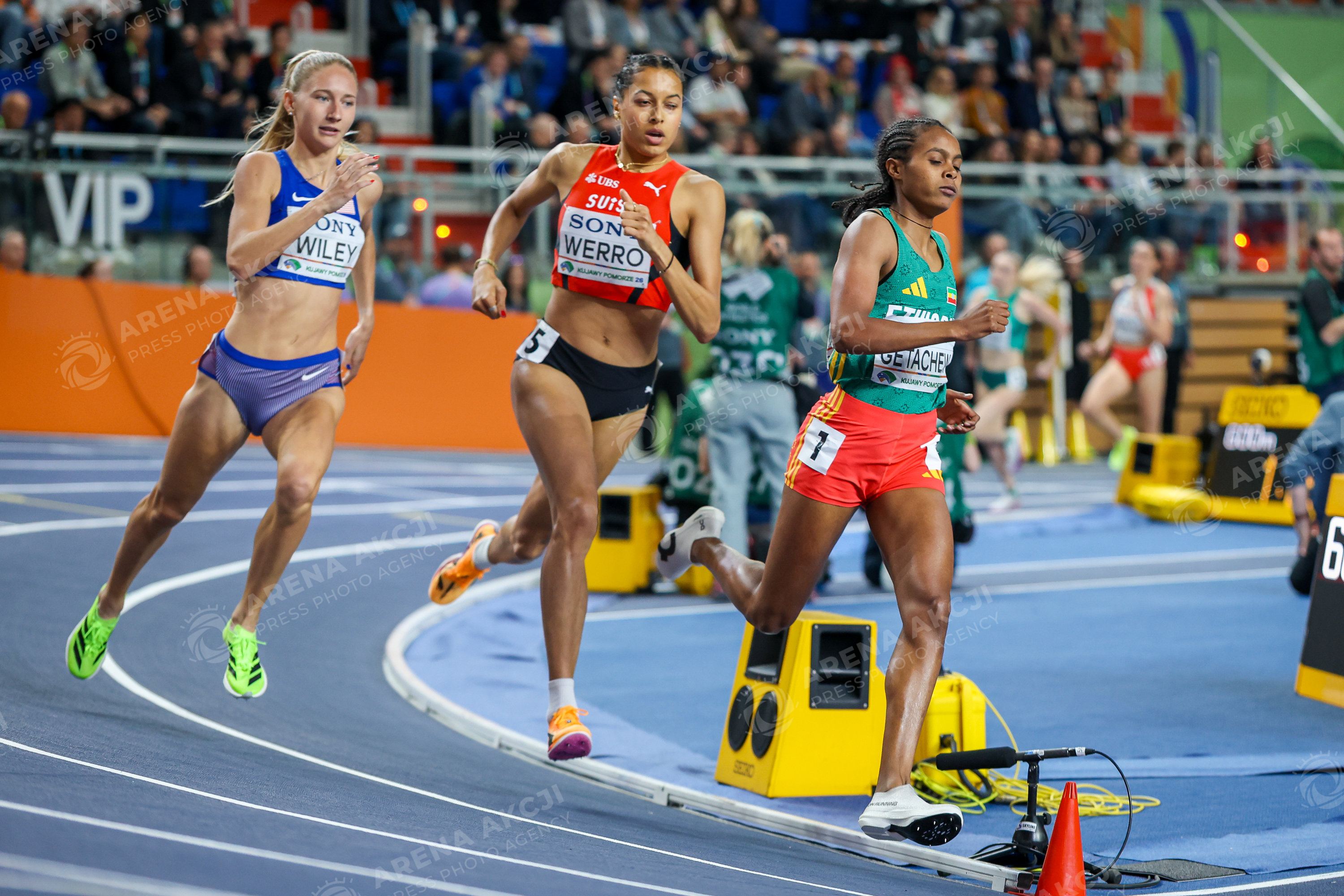 Torun 22.03.2026 World Athletics Indoor Championship Kujawy Pomorze 2026 in Torun, Poland Day Two Halowe Mistrzostwa Swiata Torun 2026 Dzien trzeci n/z Nigist Getachew Audrey Werro Addison Wiley Fot. Igor Jakubowski / Arena Akcji