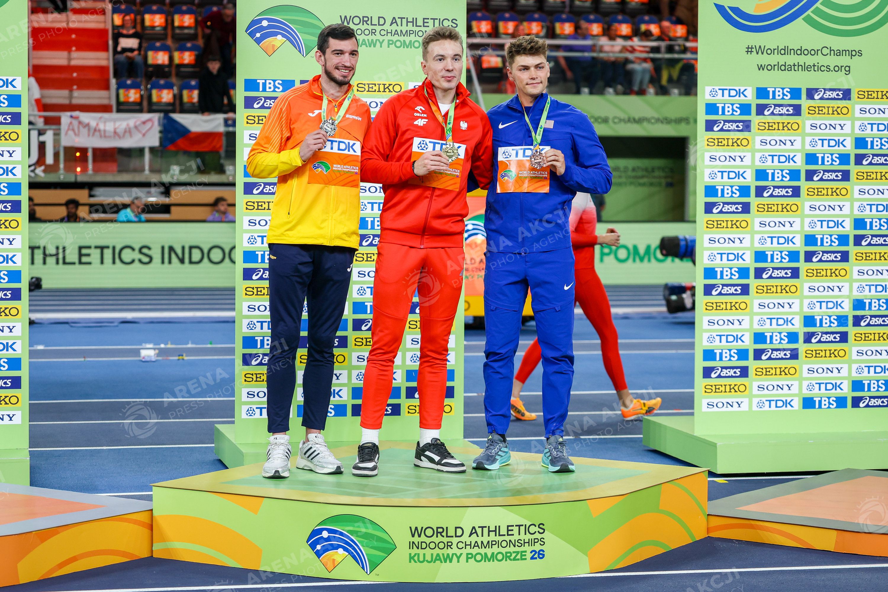 Torun 22.03.2026 World Athletics Indoor Championship Kujawy Pomorze 2026 in Torun, Poland Day Two Halowe Mistrzostwa Swiata Torun 2026 Dzien trzeci n/z Enrique Llopis Jakub Szymanski Trey Cunningham Fot. Igor Jakubowski / Arena Akcji