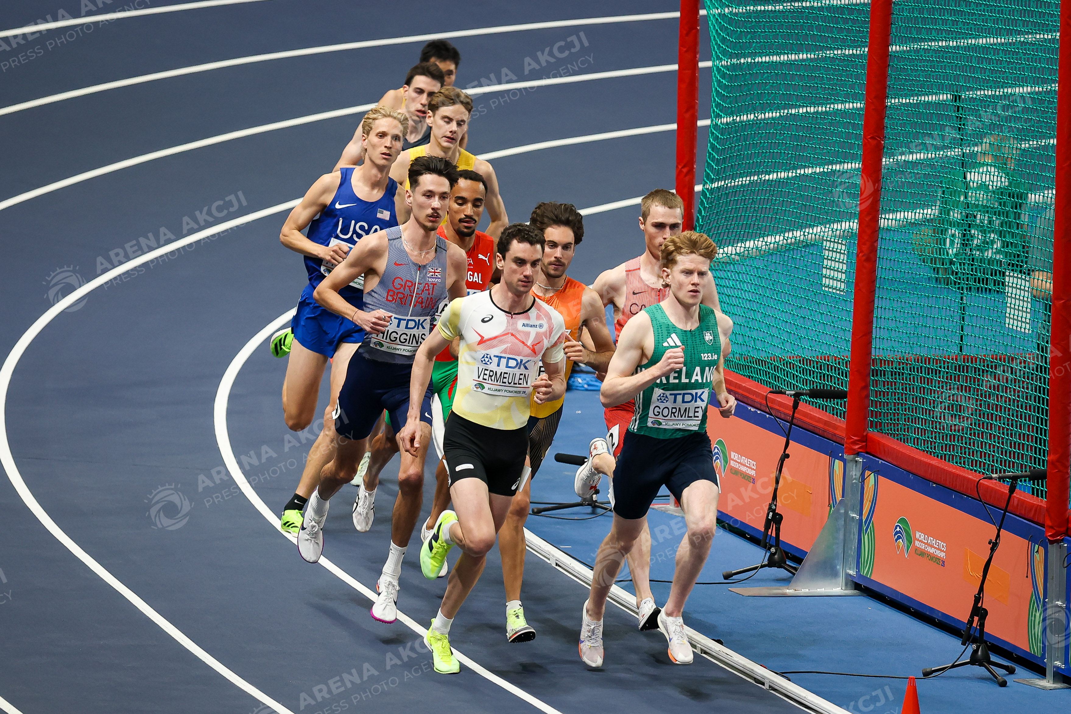 Torun 20.03.2026. World Athletics Indoor Championship Kujawy Pomorze 2026 in Torun, Poland Day 1 --- Lekka atletyka Lekkoatletyka Halowe Mistrzostwa Swiata Torun 2026 Dzien 1 Bieg mezczyzn 1500 metrow Men run 1500 meters Persons Sown : group Fot. Igor Jakubowski / Arena Akcji