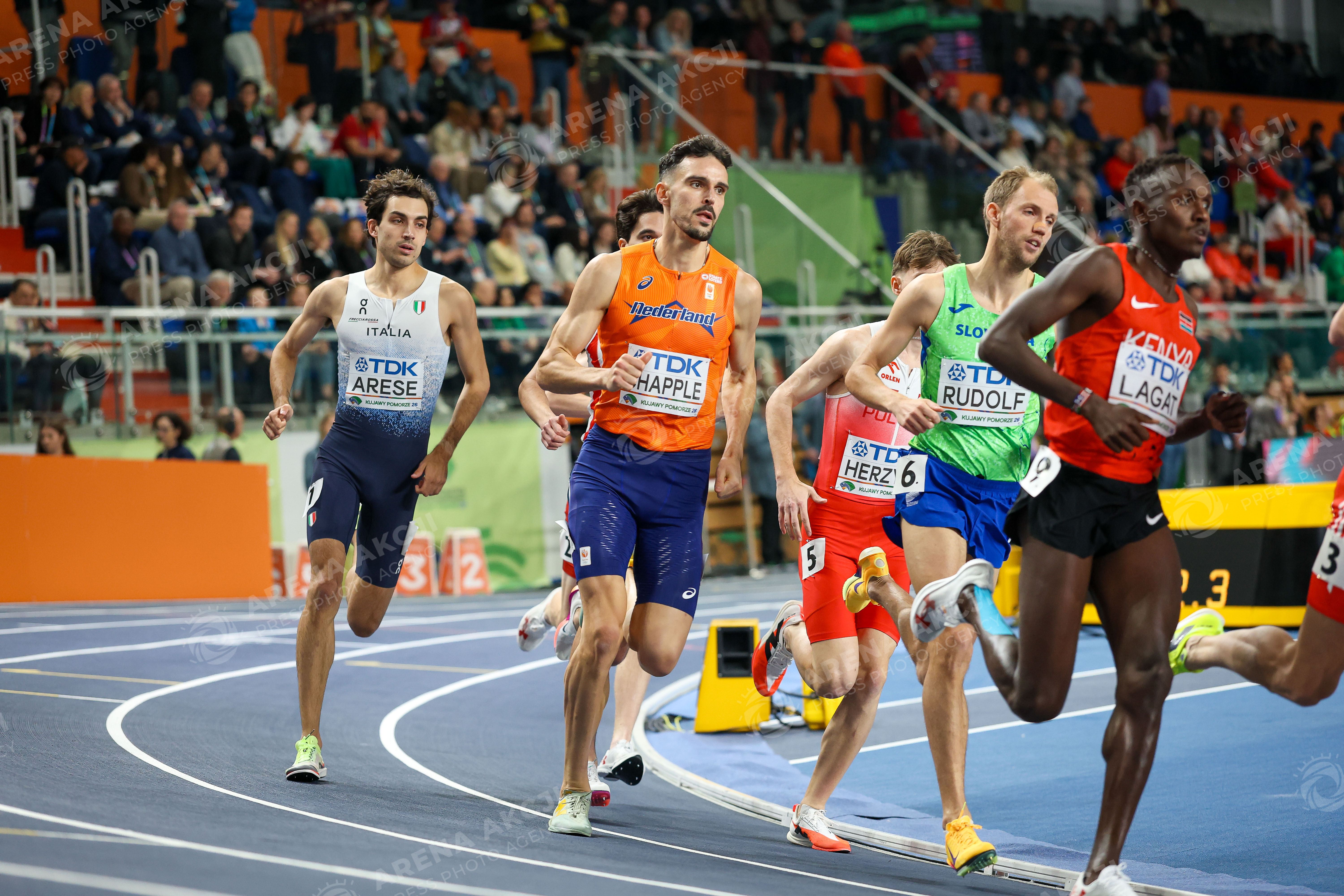 Torun 20.03.2026. World Athletics Indoor Championship Kujawy Pomorze 2026 in Torun, Poland Day 1 --- Lekka atletyka Lekkoatletyka Halowe Mistrzostwa Swiata Torun 2026 Dzien 1 Bieg mezczyzn 1500 metrow Men run 1500 meters Persons Sown : Samuel Chapple NED Fot. Igor Jakubowski / Arena Akcji