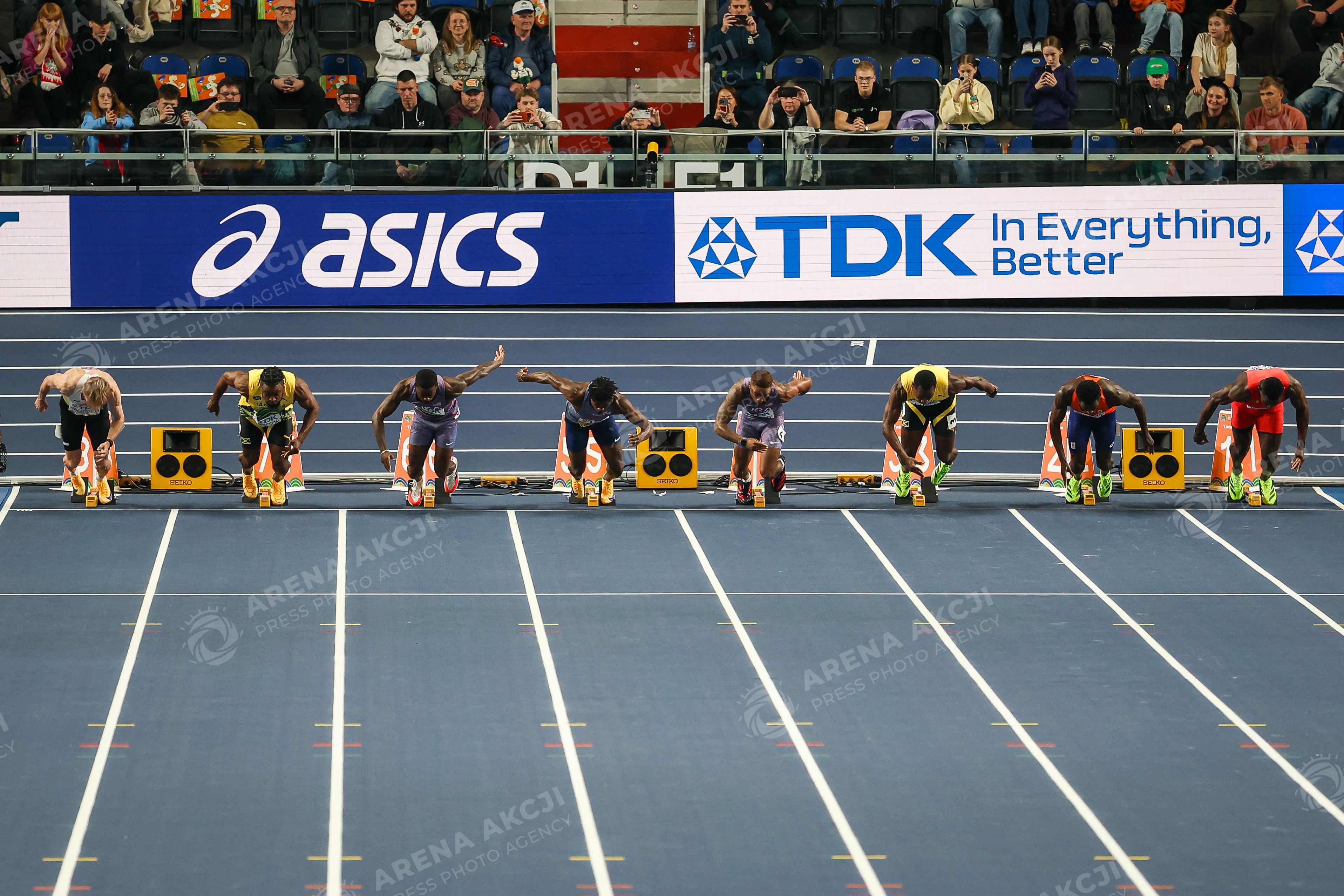 Torun 20.03.2026. World Athletics Indoor Championship Kujawy Pomorze 2026 in Torun, Poland Day 1 --- Lekka atletyka Lekkoatletyka Halowe Mistrzostwa Swiata Torun 2026 Dzien 1 bieg na 60 metrow final / Men 60 meters run final Persons Shown : group Fot. Igor Jakubowski / Arena Akcji