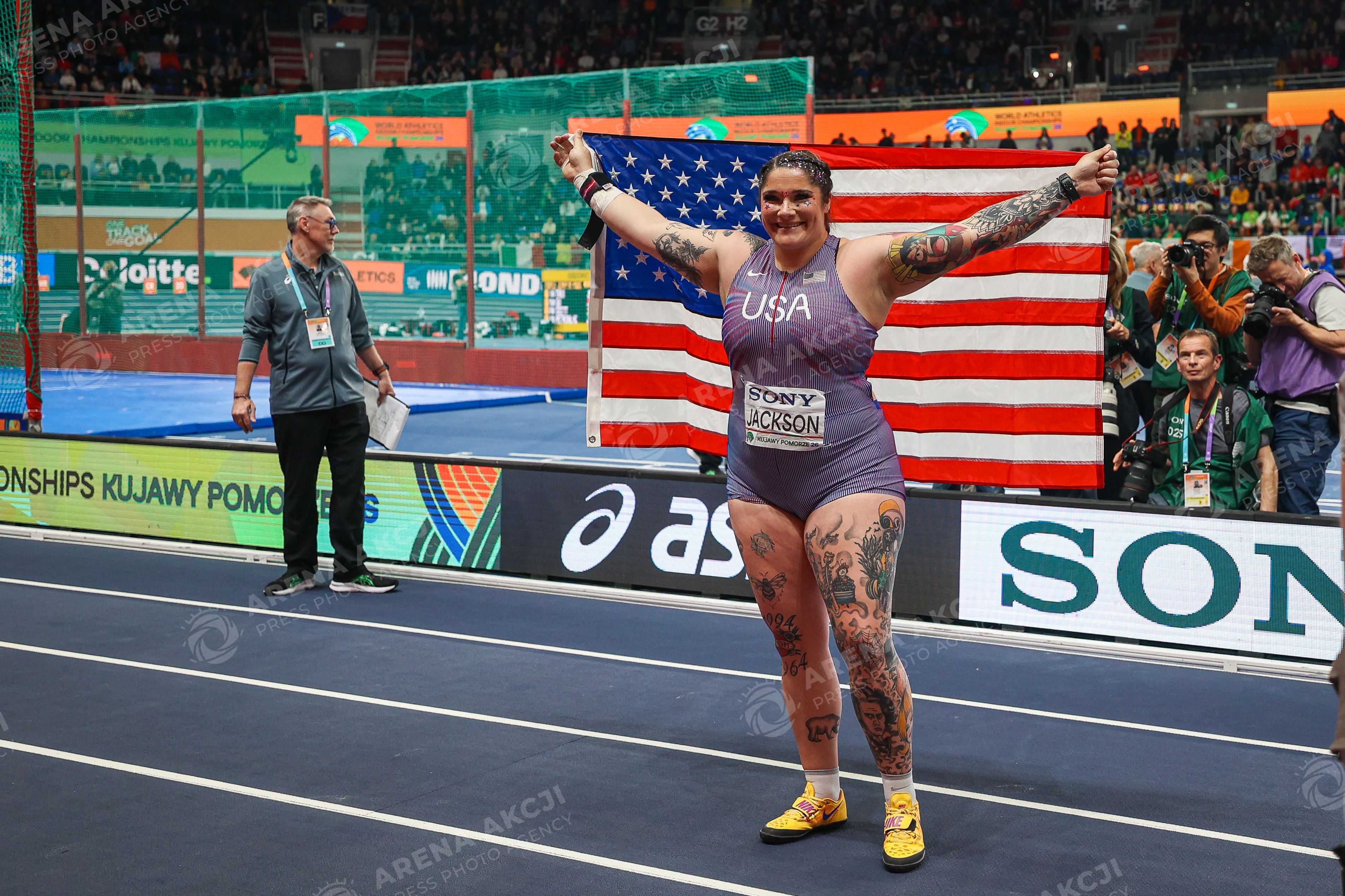 Torun 20.03.2026. World Athletics Indoor Championship Kujawy Pomorze 2026 in Torun, Poland Day 1 --- Lekka atletyka Lekkoatletyka Halowe Mistrzostwa Swiata Torun 2026 Dzien 1 Pchniecie Kula / Shot Put Women final Persons Shown : Chase JACKSON Fot. Igor Jakubowski / Arena Akcji