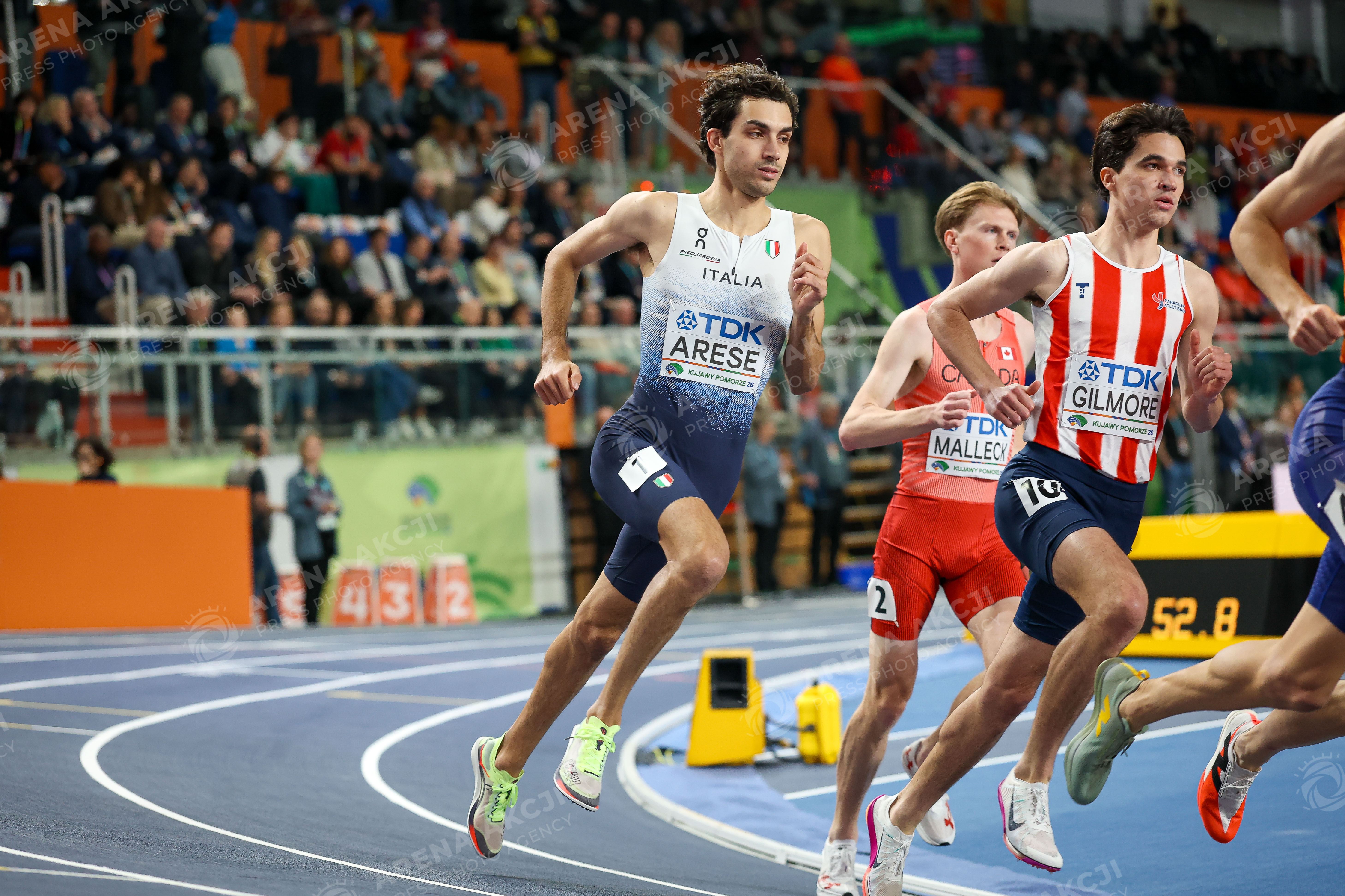 Torun 20.03.2026. World Athletics Indoor Championship Kujawy Pomorze 2026 in Torun, Poland Day 1 --- Lekka atletyka Lekkoatletyka Halowe Mistrzostwa Swiata Torun 2026 Dzien 1 Bieg mezczyzn 1500 metrow Men run 1500 meters Persons Sown : Pietro Arese ITA Fot. Igor Jakubowski / Arena Akcji