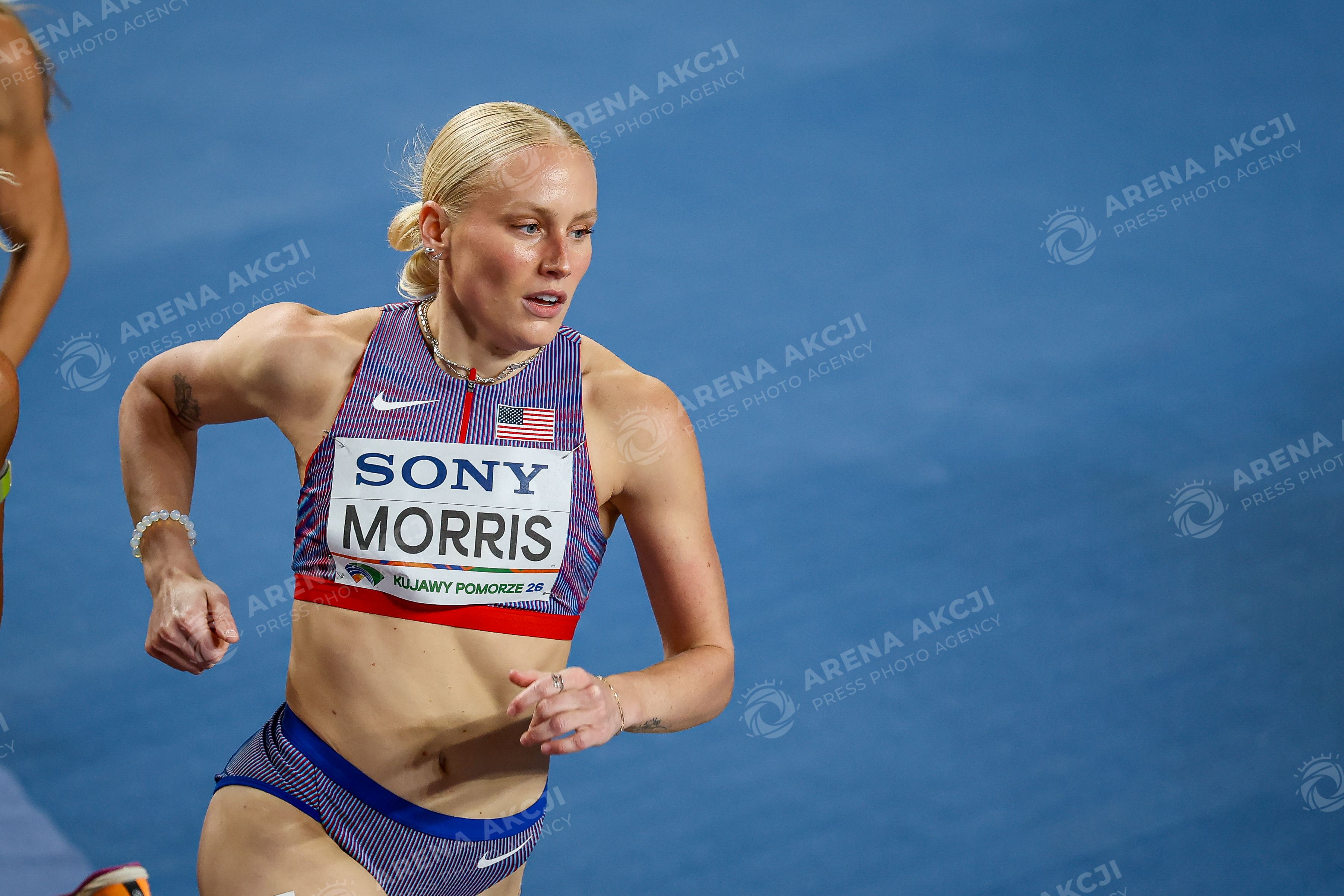 Torun 20.03.2026. World Athletics Indoor Championship Kujawy Pomorze 2026 in Torun, Poland Day 1 --- Lekka atletyka Lekkoatletyka Halowe Mistrzostwa Swiata Torun 2026 Dzien 1 Bieg kobiet 1500 metrow Women run 1500 meters Persons Sown : Gracie Morris USA Fot. Igor Jakubowski / Arena Akcji