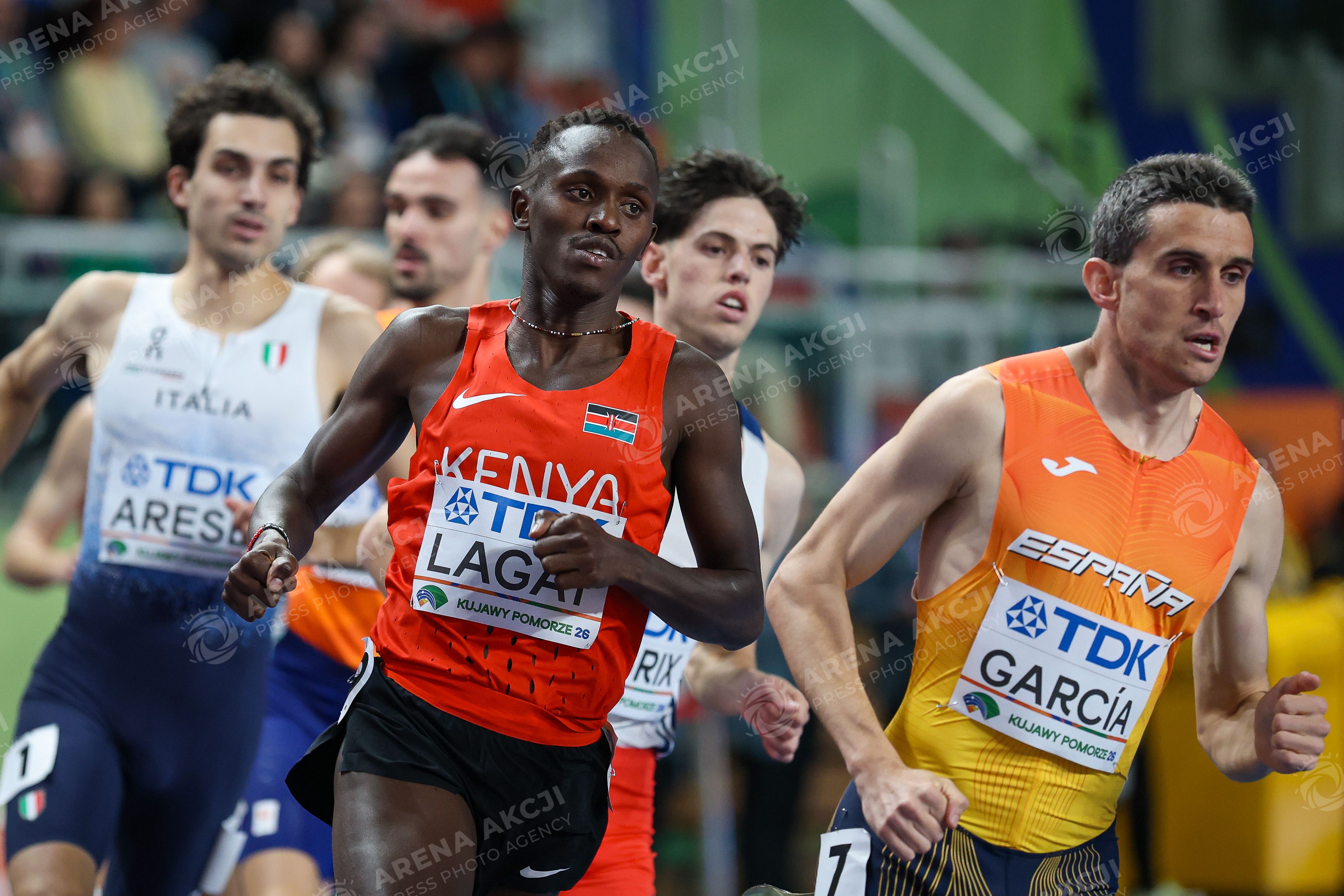 Torun 20.03.2026. World Athletics Indoor Championship Kujawy Pomorze 2026 in Torun, Poland Day 1 --- Lekka atletyka Lekkoatletyka Halowe Mistrzostwa Swiata Torun 2026 Dzien 1 Bieg mezczyzn 1500 metrow Men run 1500 meters Persons Sown : Festus Lagat KEN Fot. Igor Jakubowski / Arena Akcji
