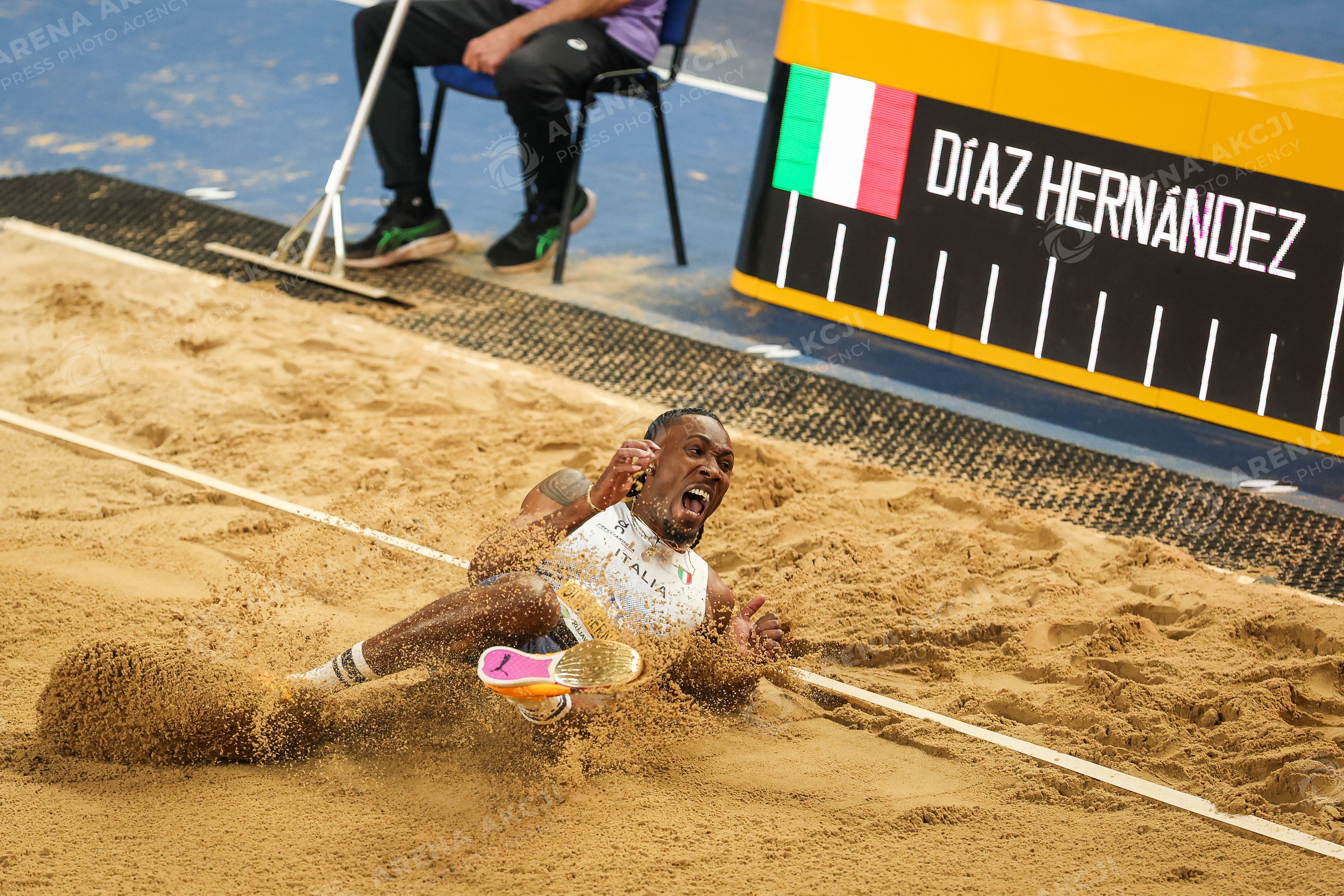 Torun 20.03.2026. World Athletics Indoor Championship Kujawy Pomorze 2026 in Torun, Poland Day 1 --- Lekka atletyka Lekkoatletyka Halowe Mistrzostwa Swiata Torun 2026 Dzien 1 Trojskok Triple Jump Persons Shown : Andy Diaz Hernandez ITA Fot. Igor Jakubowski / Arena Akcji