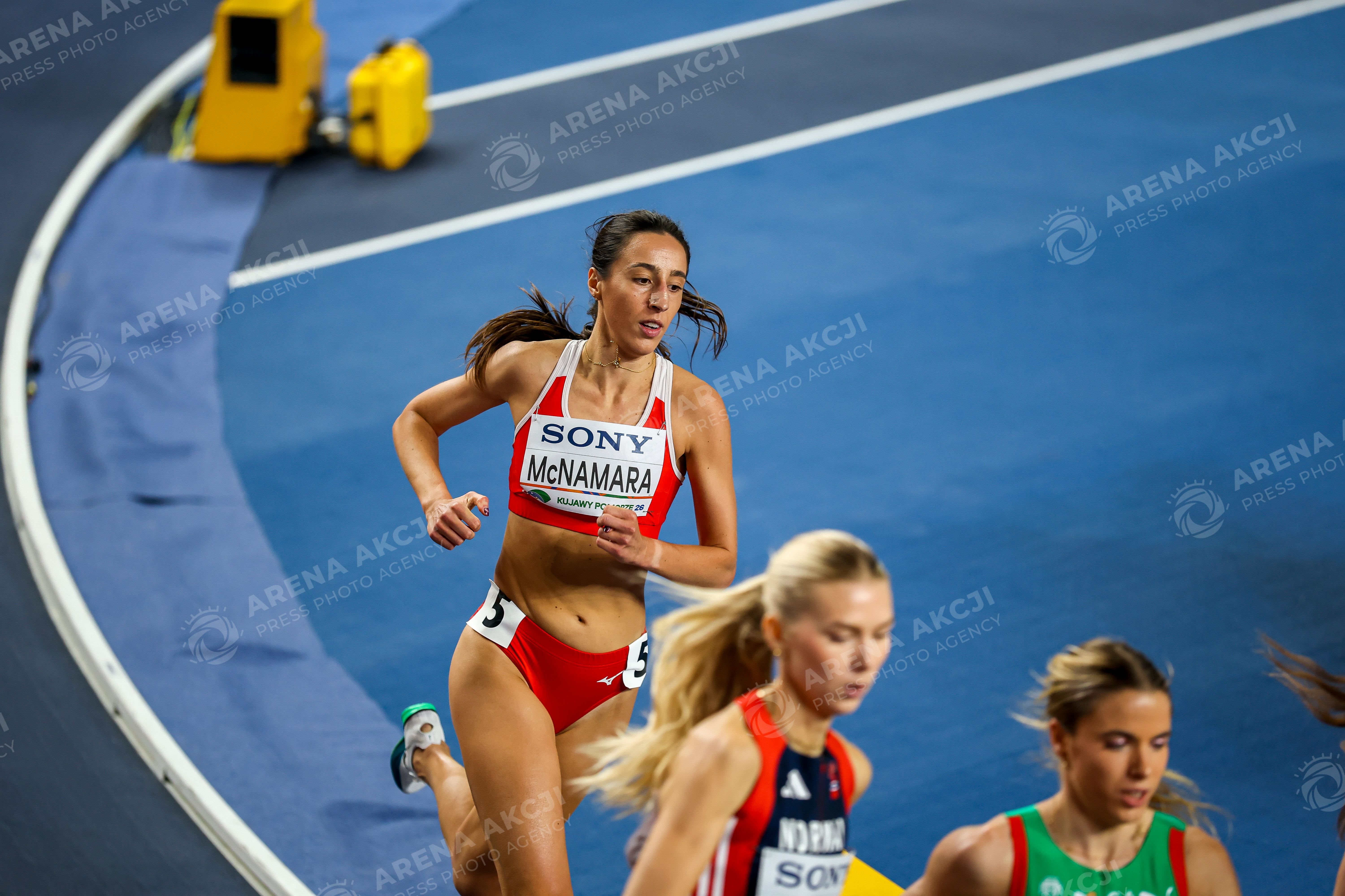Torun 20.03.2026. World Athletics Indoor Championship Kujawy Pomorze 2026 in Torun, Poland Day 1 --- Lekka atletyka Lekkoatletyka Halowe Mistrzostwa Swiata Torun 2026 Dzien 1 Bieg kobiet 1500 metrow Women run 1500 meters Persons Sown : Gina Mcnamara MLT Fot. Igor Jakubowski / Arena Akcji