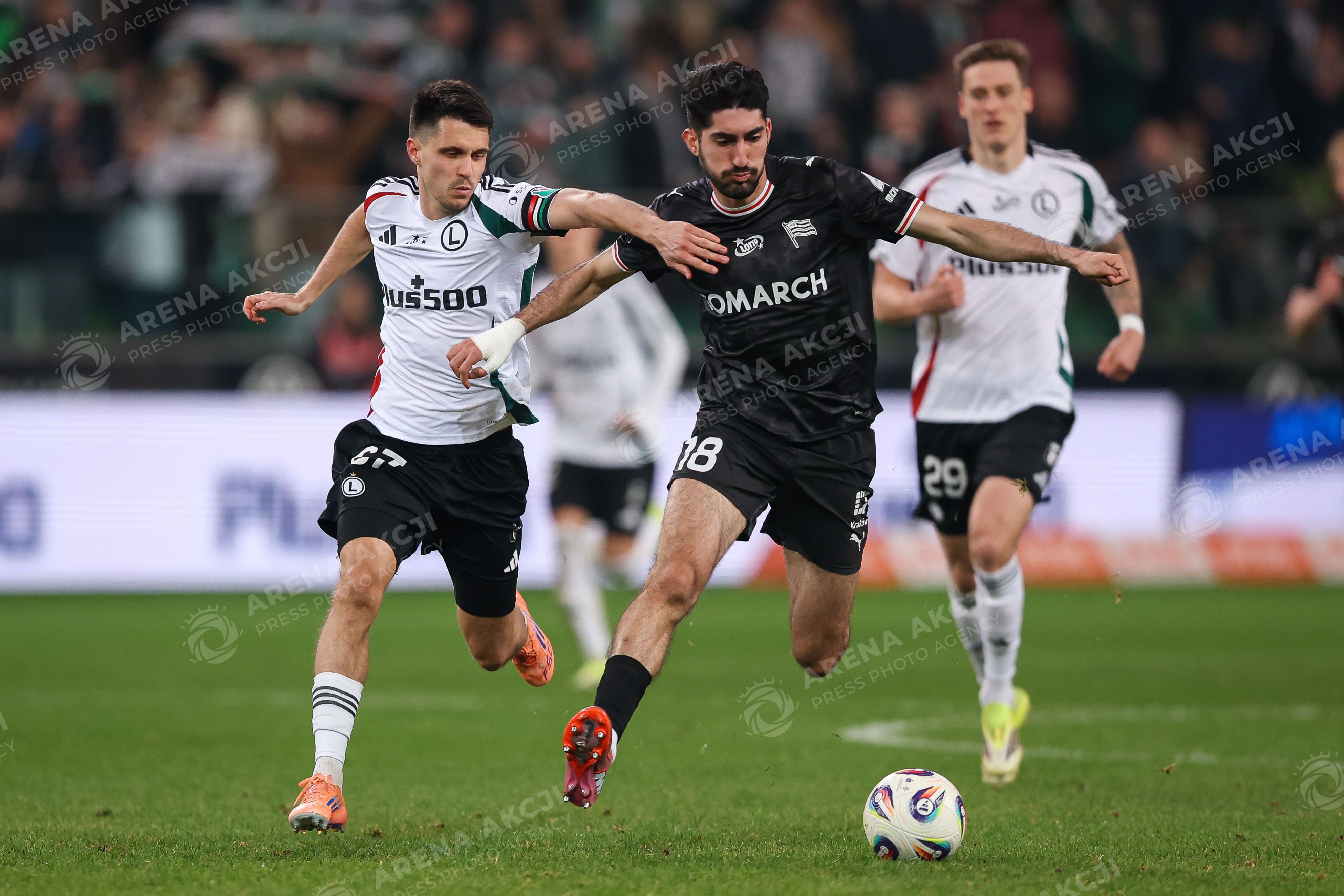 Warszawa 08.03.2026. Pilka nozna PKO BP Ekstraklasa sezon 2025/2026 kolejka 24 mecz: Legia Warszawa - Cracovia --- Football PKO BP Ekstraklasa season 2025/2026 round 24 match between Legia Warsaw and Cracovia in Warsaw, Poland Persons Shown : Bartosz Kapustka Kahveh Zahiroleslam Fot. Igor Jakubowski / Arena Akcji