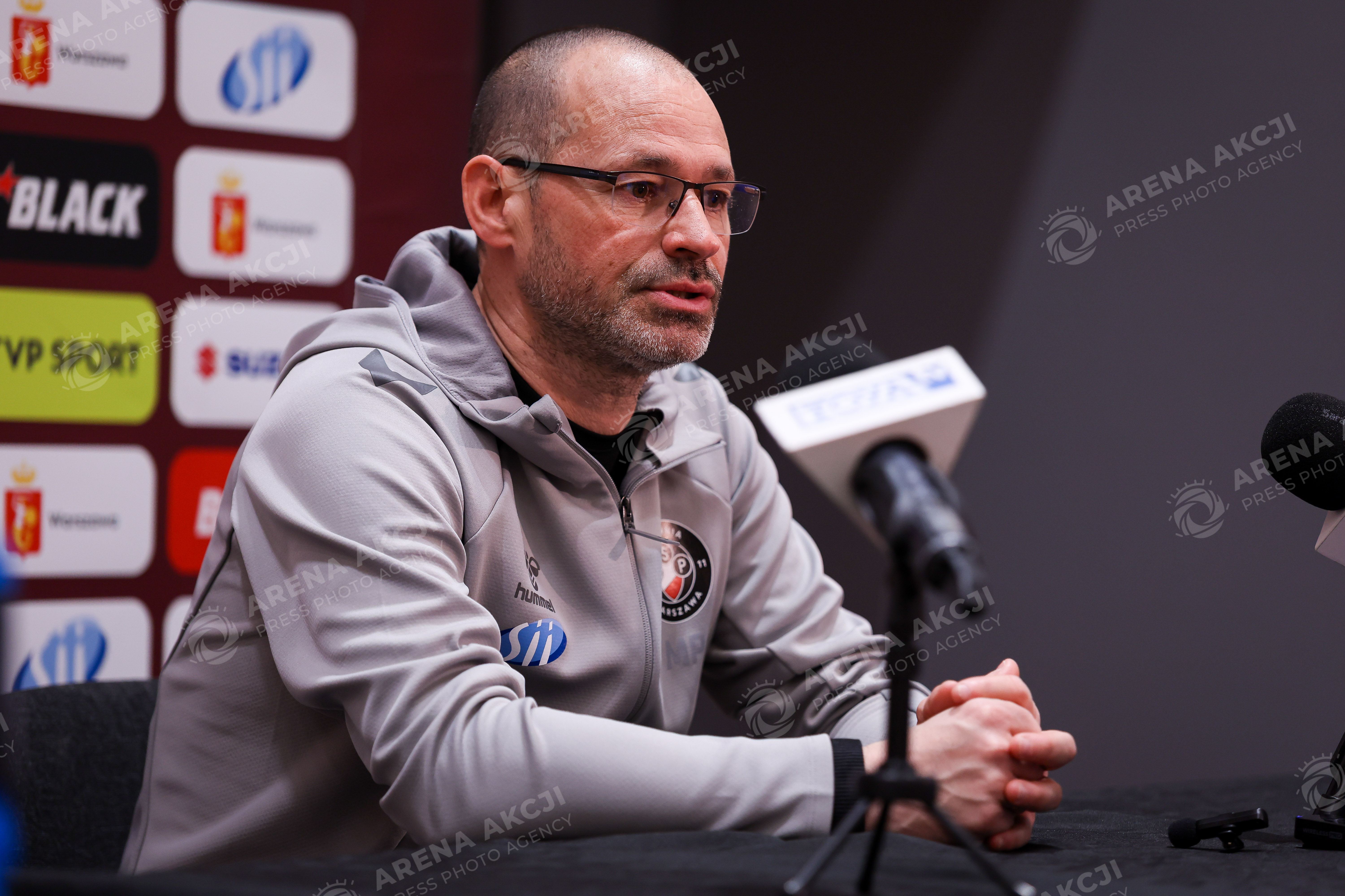 Warszawa 09.03.2026. Pilka nozna Betclic 1 Liga sezon 2025/2026 kolejka 24 mecz: Polonia Warszawa - LKS Lodz --- Football PKO BP Ekstraklasa season 2025/2026 round 24 match between Polonia Warsaw and LKS Lodz in Warsaw, Poland Persons Shown : Trener Mariusz Pawlak Konferencja Fot. Igor Jakubowski / Arena Akcji