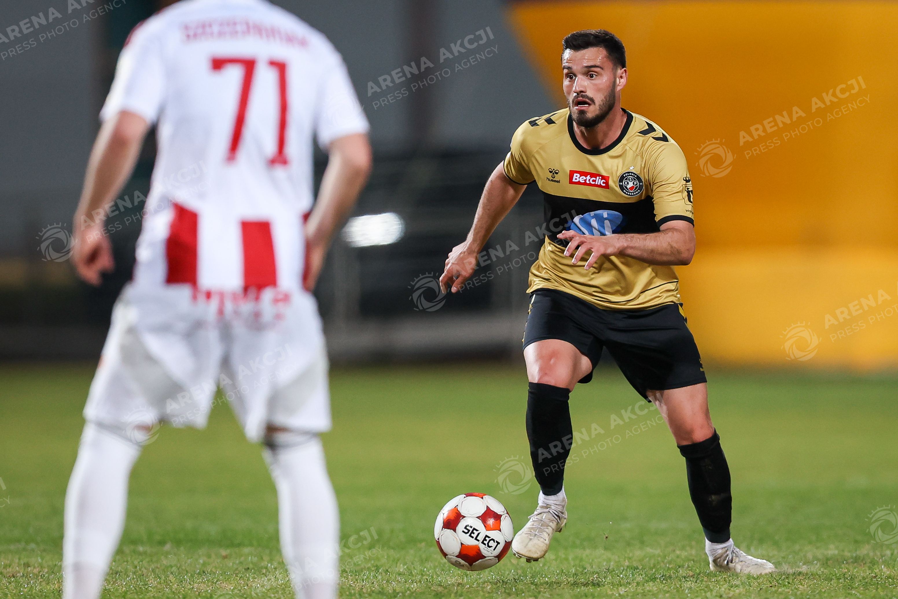 Pruszkow 14.03.2026. Pilka nozna Betclic I Liga sezon 2025/2026 kolejka 25 mecz: Pogon Grodzisk Mazowiecki - Polonia Warszawa --- Football Betclic I League season 2025/2026 round 25 match between Pogon Grodzisk Mazowiecki and Polonia Warsaw Persons Shown : Erion Hoxhallari Fot. Igor Jakubowski / Arena Akcji