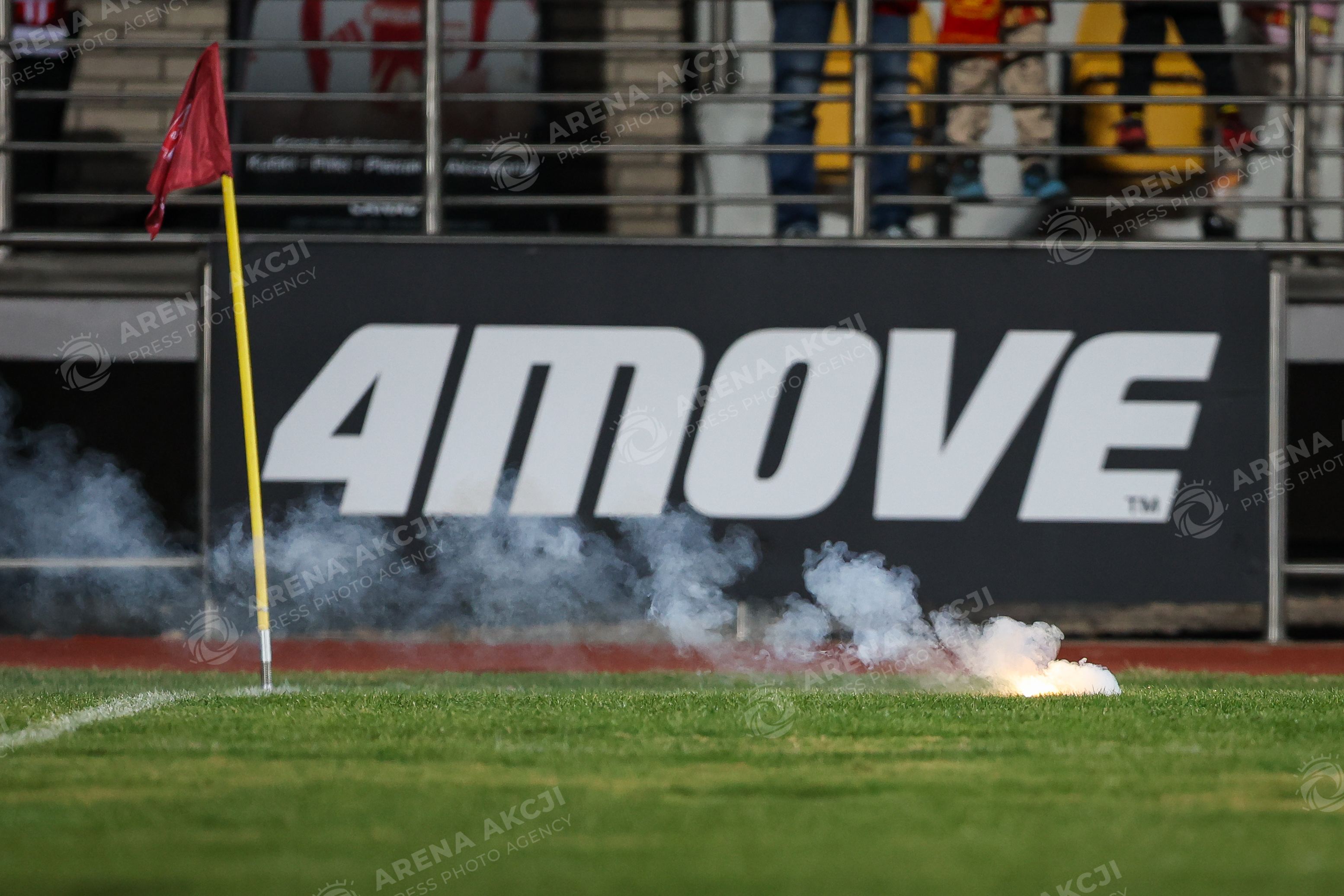 Pruszkow 14.03.2026. Pilka nozna Betclic I Liga sezon 2025/2026 kolejka 25 mecz: Pogon Grodzisk Mazowiecki - Polonia Warszawa --- Football Betclic I League season 2025/2026 round 25 match between Pogon Grodzisk Mazowiecki and Polonia Warsaw Persons Shown : raca piro Fot. Igor Jakubowski / Arena Akcji