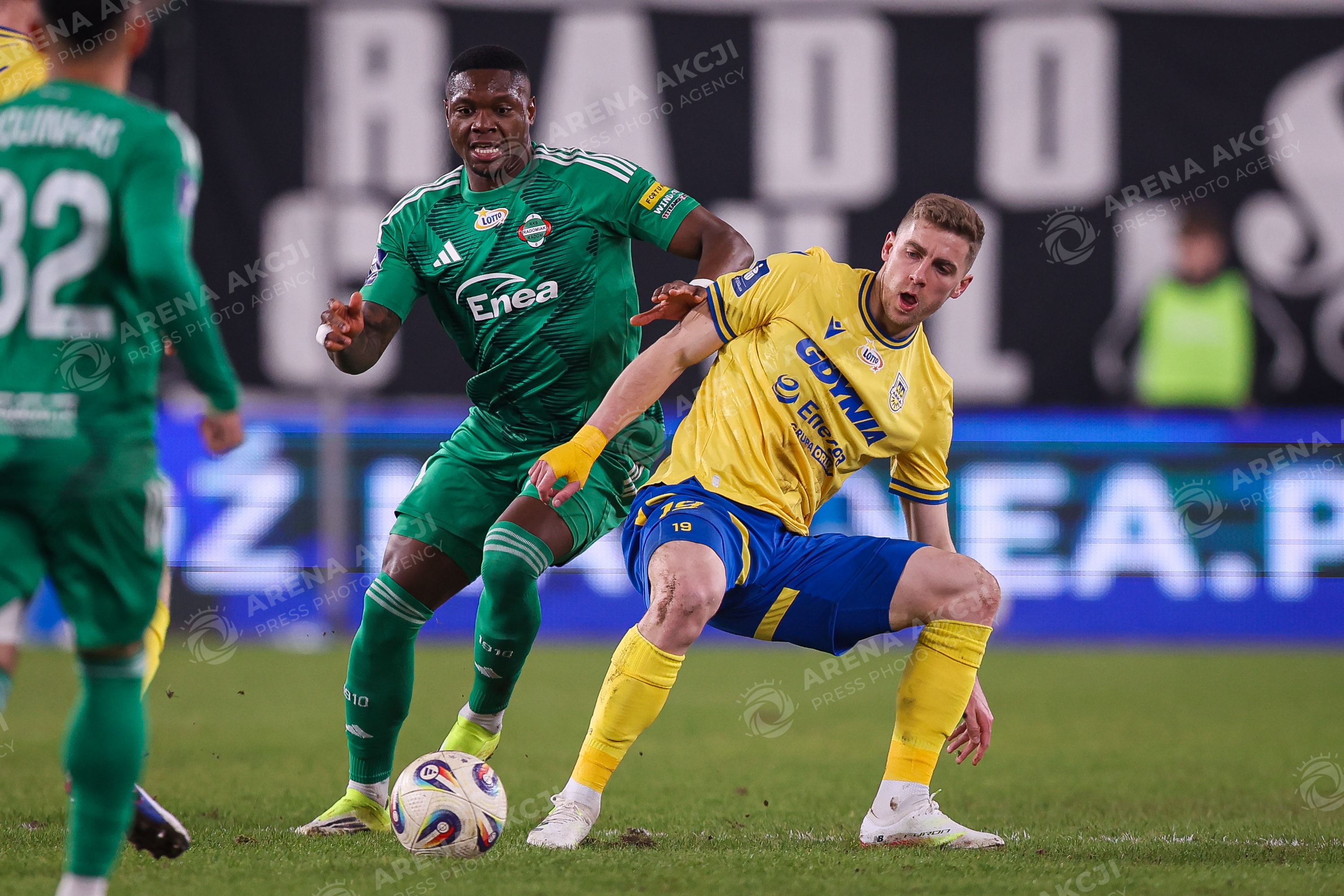 Radom 05.03.2026. Pilka nozna PKO BP Ekstraklasa sezon 2025/2026 kolejka 19 mecz: Radomiak Radom - Arka Gdynia --- Football PKO BP Ekstraklasa season 2025/2026 round 19 match between Radomiak Radom and Arka Gdynia in Radom, Poland Persons Shown : Steve Kingue Vladislavs Gutkovskis Fot. Igor Jakubowski / Arena Akcji