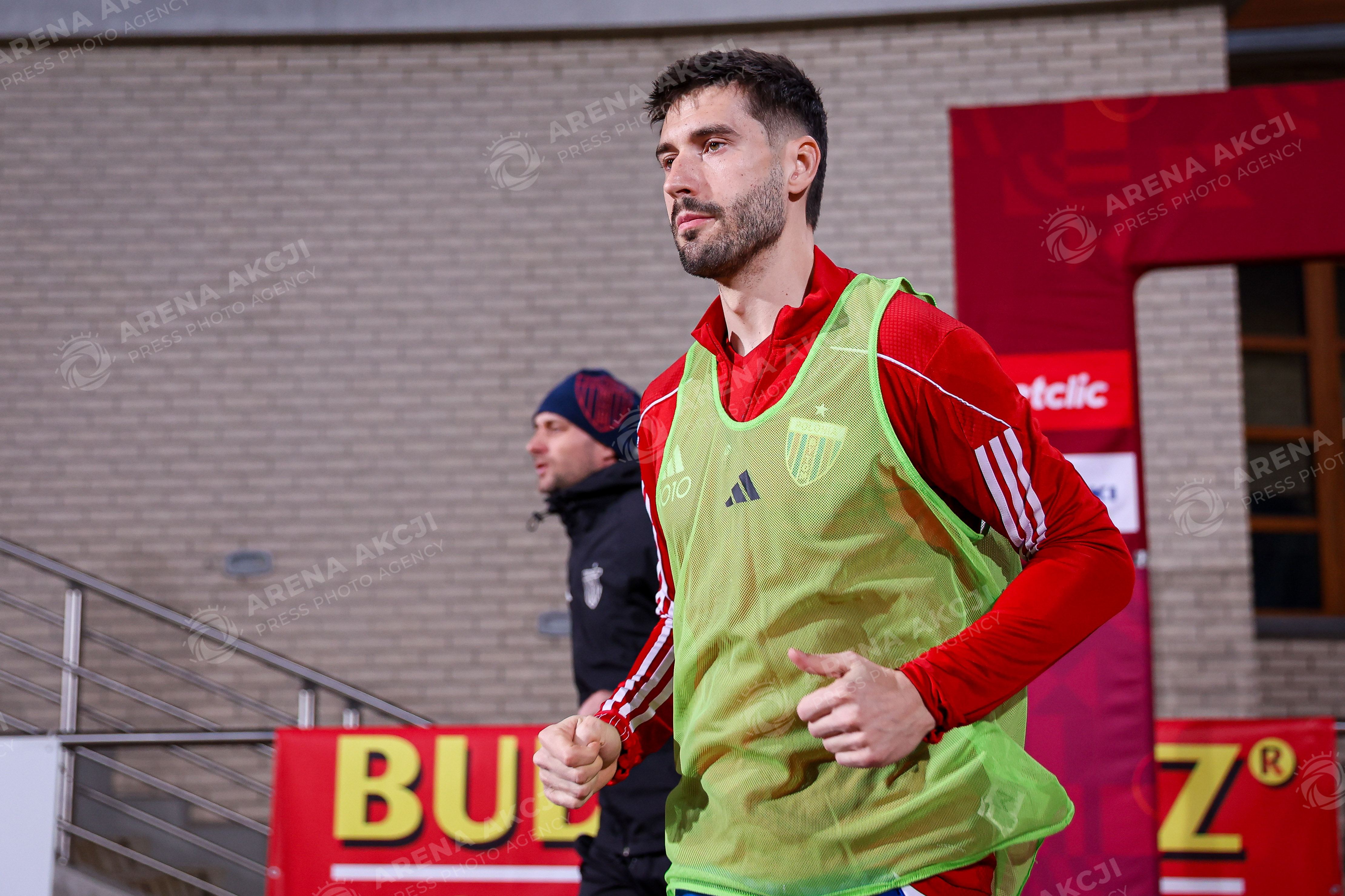 Pruszkow 28.02.2026. Pilka nozna Betclic I Liga sezon 2025/2026 kolejka 23 mecz: Pogon Grodzisk Mazowiecki - Polonia Bytom --- Football Betclic I League season 2025/2026 round 23 match between Pogon Grodzisk Mazowiecki and Polonia Bytom Persons Shown : rozgrzewka warmup Fot. Igor Jakubowski / Arena Akcji