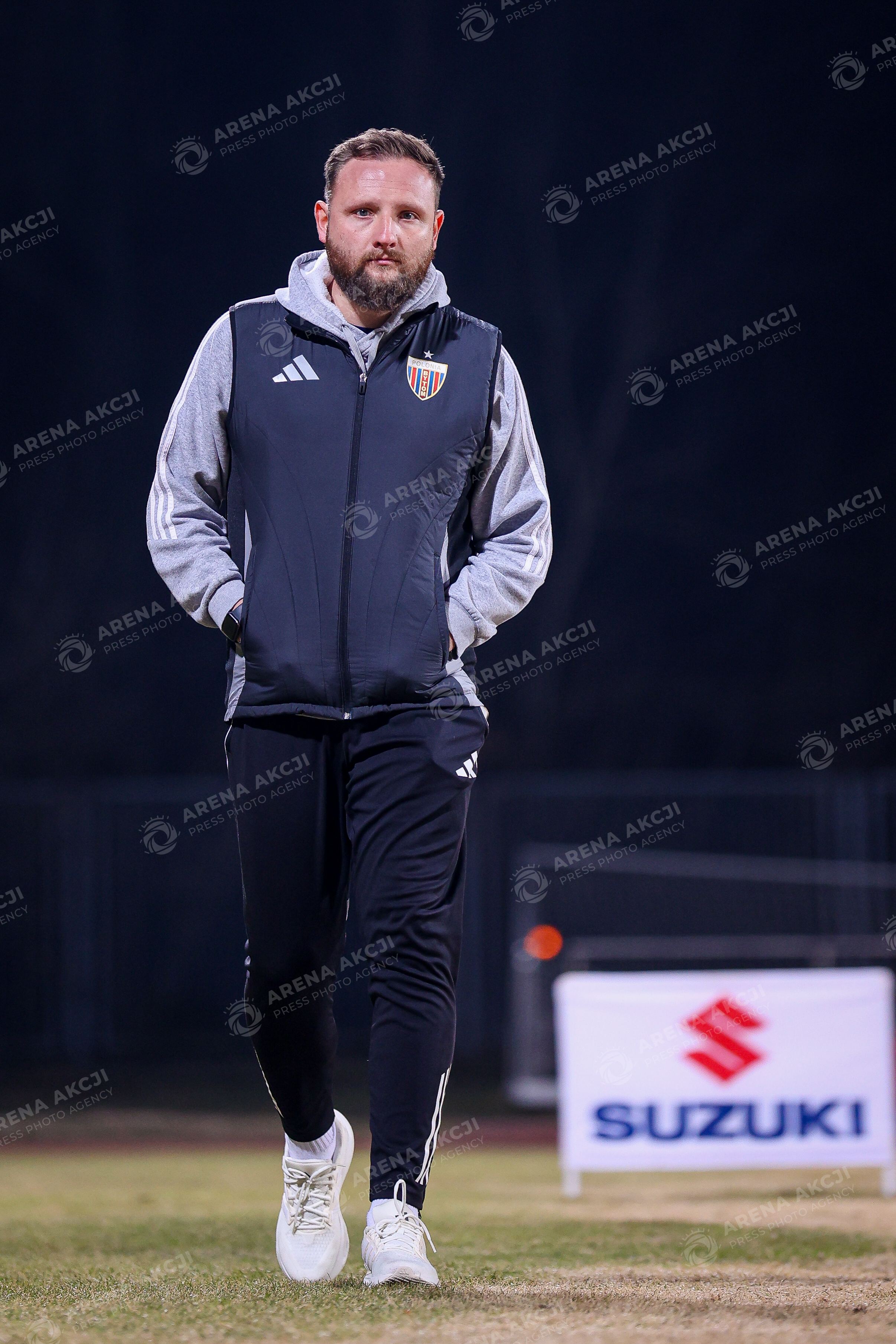 Pruszkow 28.02.2026. Pilka nozna Betclic I Liga sezon 2025/2026 kolejka 23 mecz: Pogon Grodzisk Mazowiecki - Polonia Bytom --- Football Betclic I League season 2025/2026 round 23 match between Pogon Grodzisk Mazowiecki and Polonia Bytom Persons Shown : Trener Patryk Czubak Fot. Igor Jakubowski / Arena Akcji