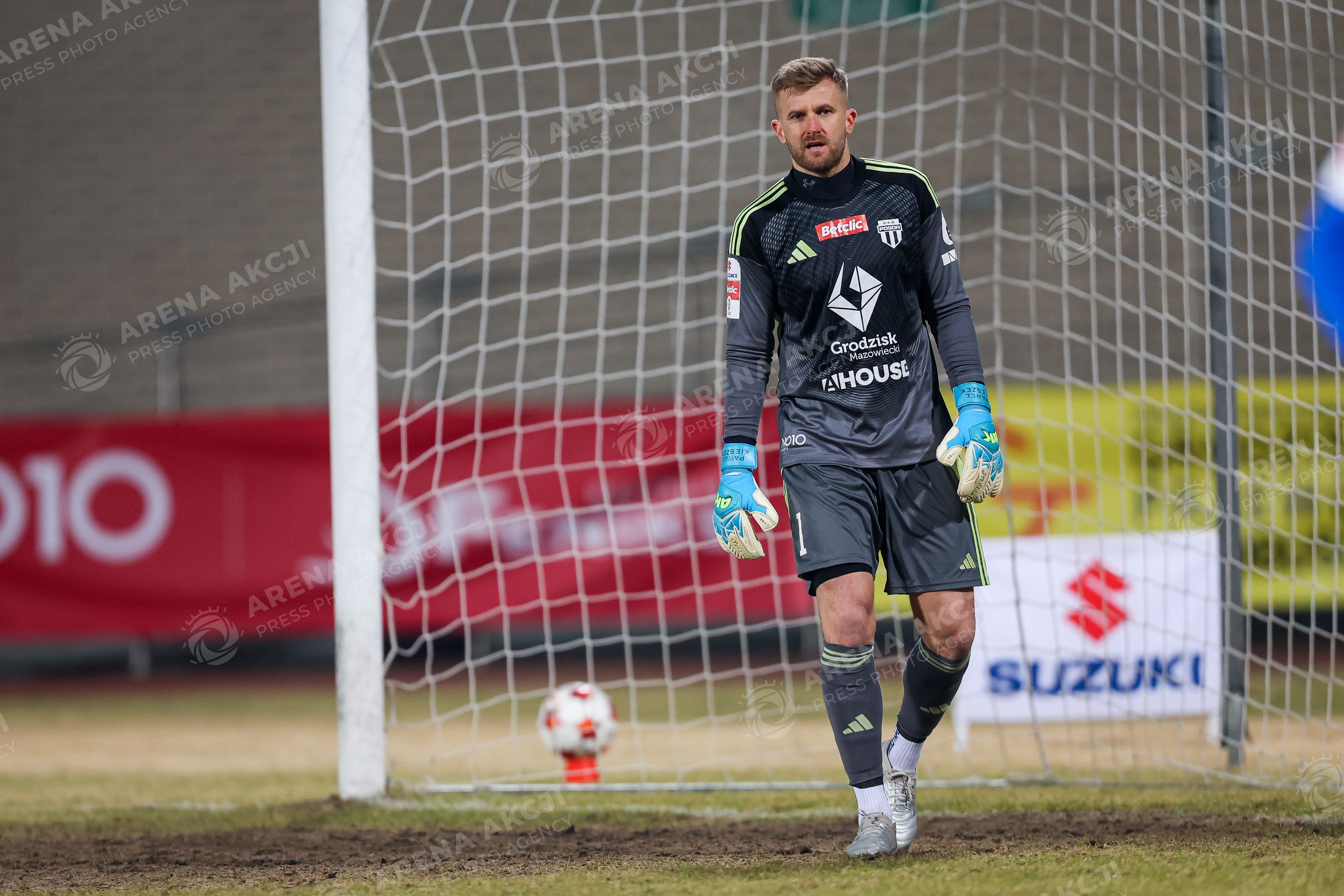 Pruszkow 28.02.2026. Pilka nozna Betclic I Liga sezon 2025/2026 kolejka 23 mecz: Pogon Grodzisk Mazowiecki - Polonia Bytom --- Football Betclic I League season 2025/2026 round 23 match between Pogon Grodzisk Mazowiecki and Polonia Bytom Persons Shown : Pawel Kieszek Fot. Igor Jakubowski / Arena Akcji