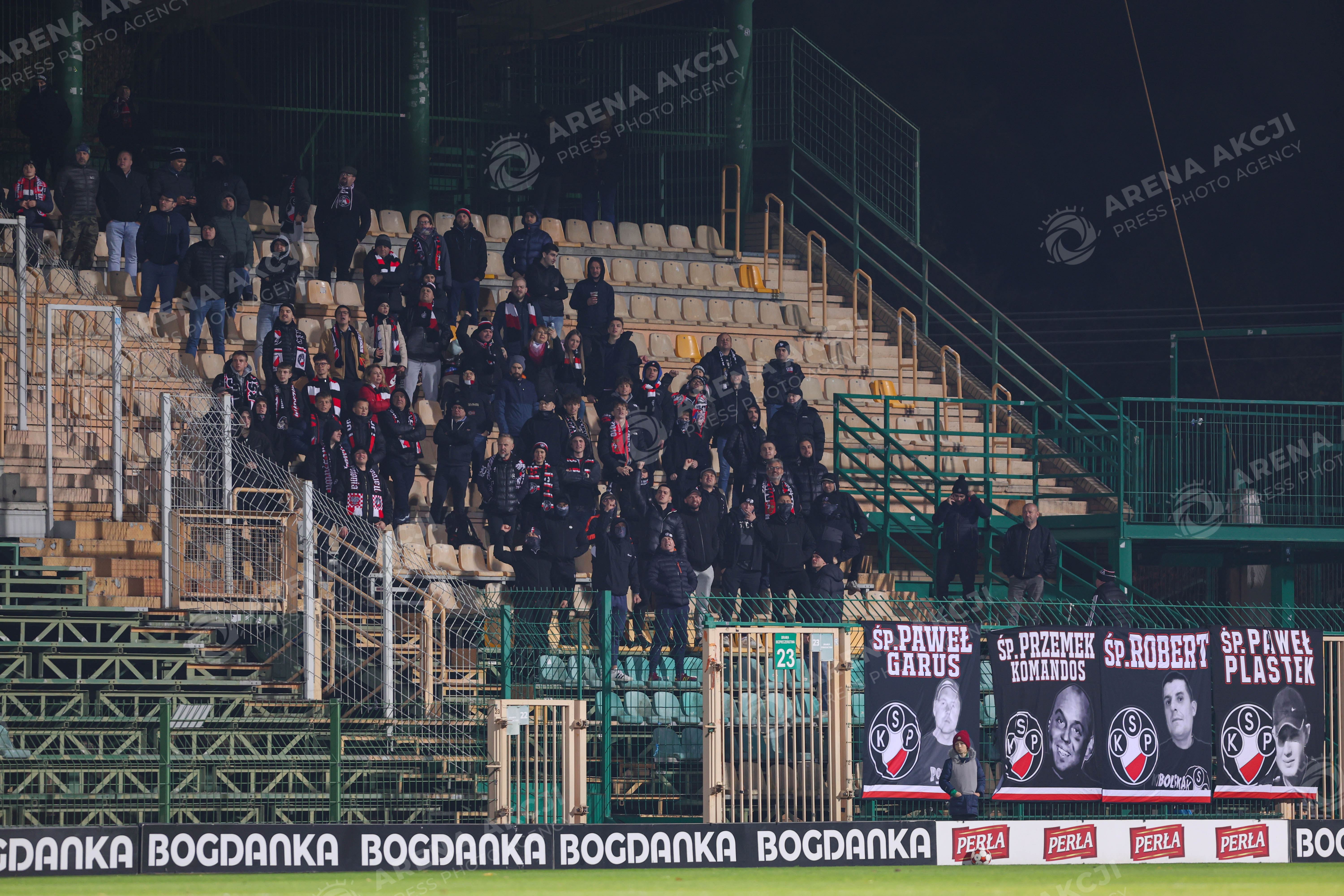 Leczna 31.10.2025. Pilka nozna Betclic I Liga sezon 2025/2026 kolejka 15 mecz: Gornik Leczna - Polonia Warszawa --- Football Betclic I League season 2025/2026 round 15 match: Gornik Leczna - Polonia Warsaw nz Polonia Warszawa kibice Fot. Igor Jakubowski / Arena Akcji