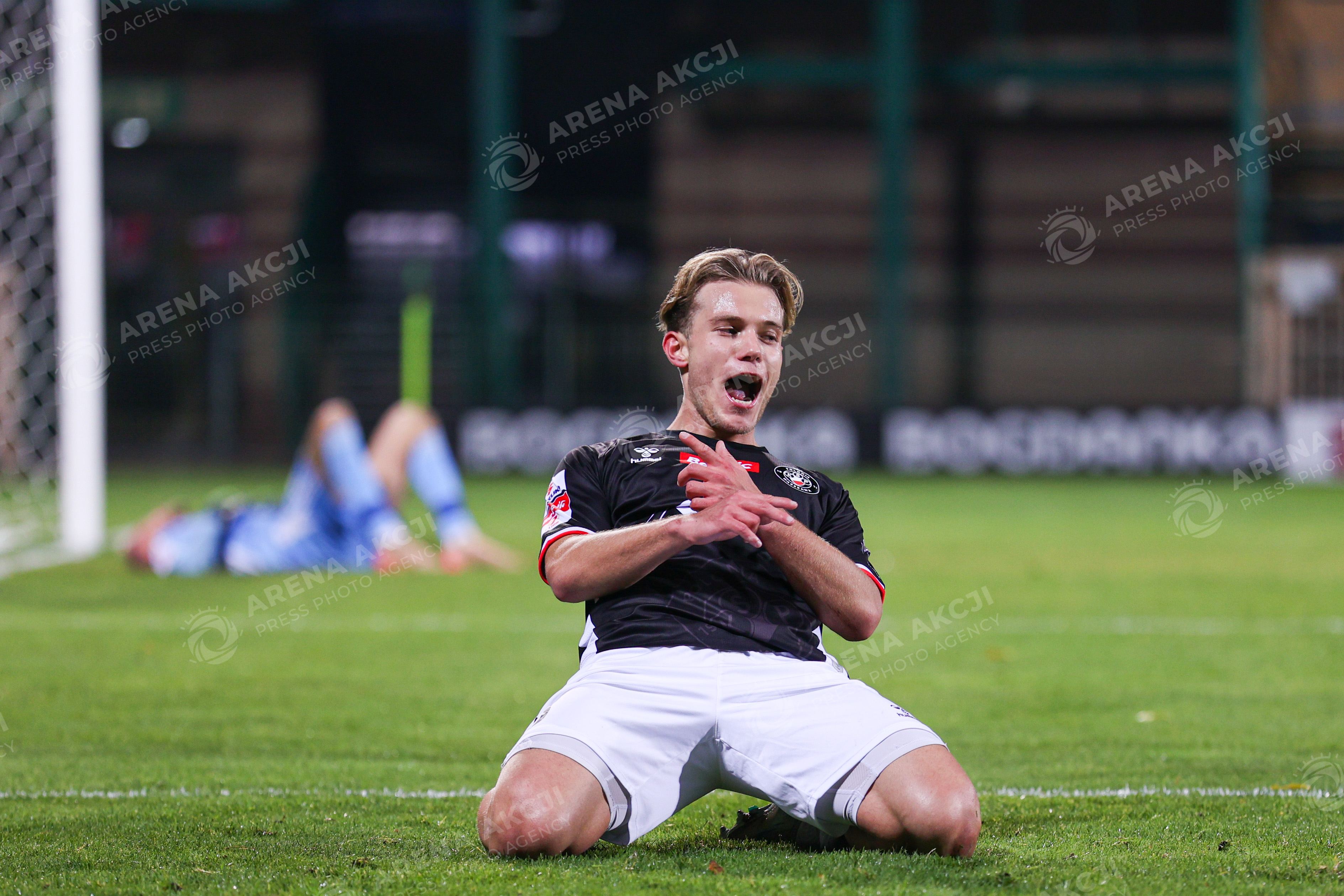 Leczna 31.10.2025. Pilka nozna Betclic I Liga sezon 2025/2026 kolejka 15 mecz: Gornik Leczna - Polonia Warszawa --- Football Betclic I League season 2025/2026 round 15 match: Gornik Leczna - Polonia Warsaw nz Oliwier Wojciechowski gol radosc Fot. Igor Jakubowski / Arena Akcji