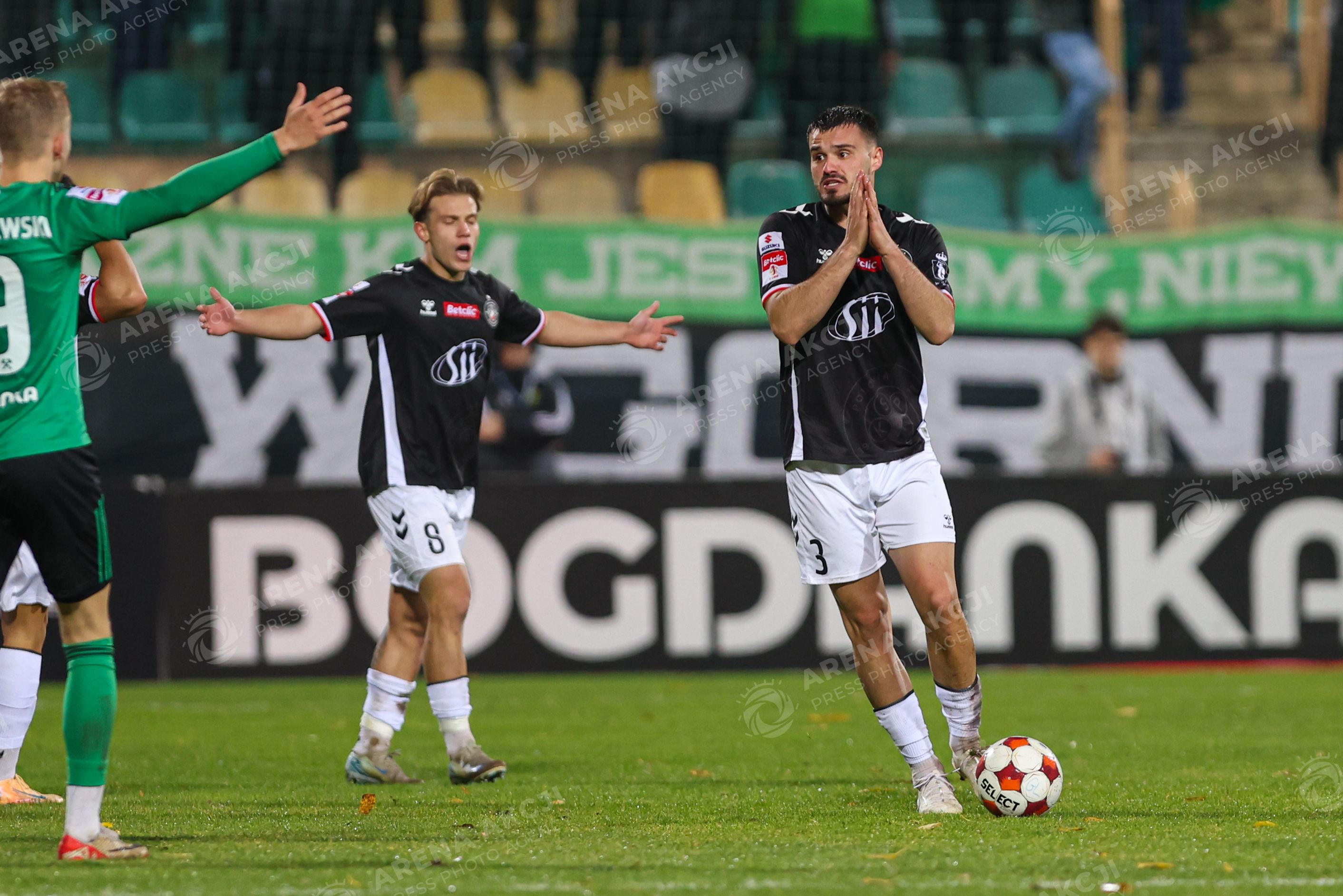 Leczna 31.10.2025. Pilka nozna Betclic I Liga sezon 2025/2026 kolejka 15 mecz: Gornik Leczna - Polonia Warszawa --- Football Betclic I League season 2025/2026 round 15 match: Gornik Leczna - Polonia Warsaw nz Oliwier Wojciechowski Hajdin Salihu Fot. Igor Jakubowski / Arena Akcji