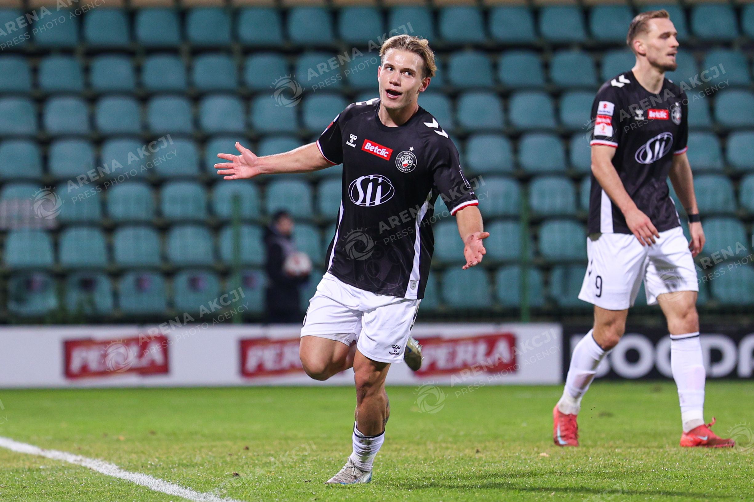 Leczna 31.10.2025. Pilka nozna Betclic I Liga sezon 2025/2026 kolejka 15 mecz: Gornik Leczna - Polonia Warszawa --- Football Betclic I League season 2025/2026 round 15 match: Gornik Leczna - Polonia Warsaw nz Oliwier Wojciechowski gol radosc Fot. Igor Jakubowski / Arena Akcji