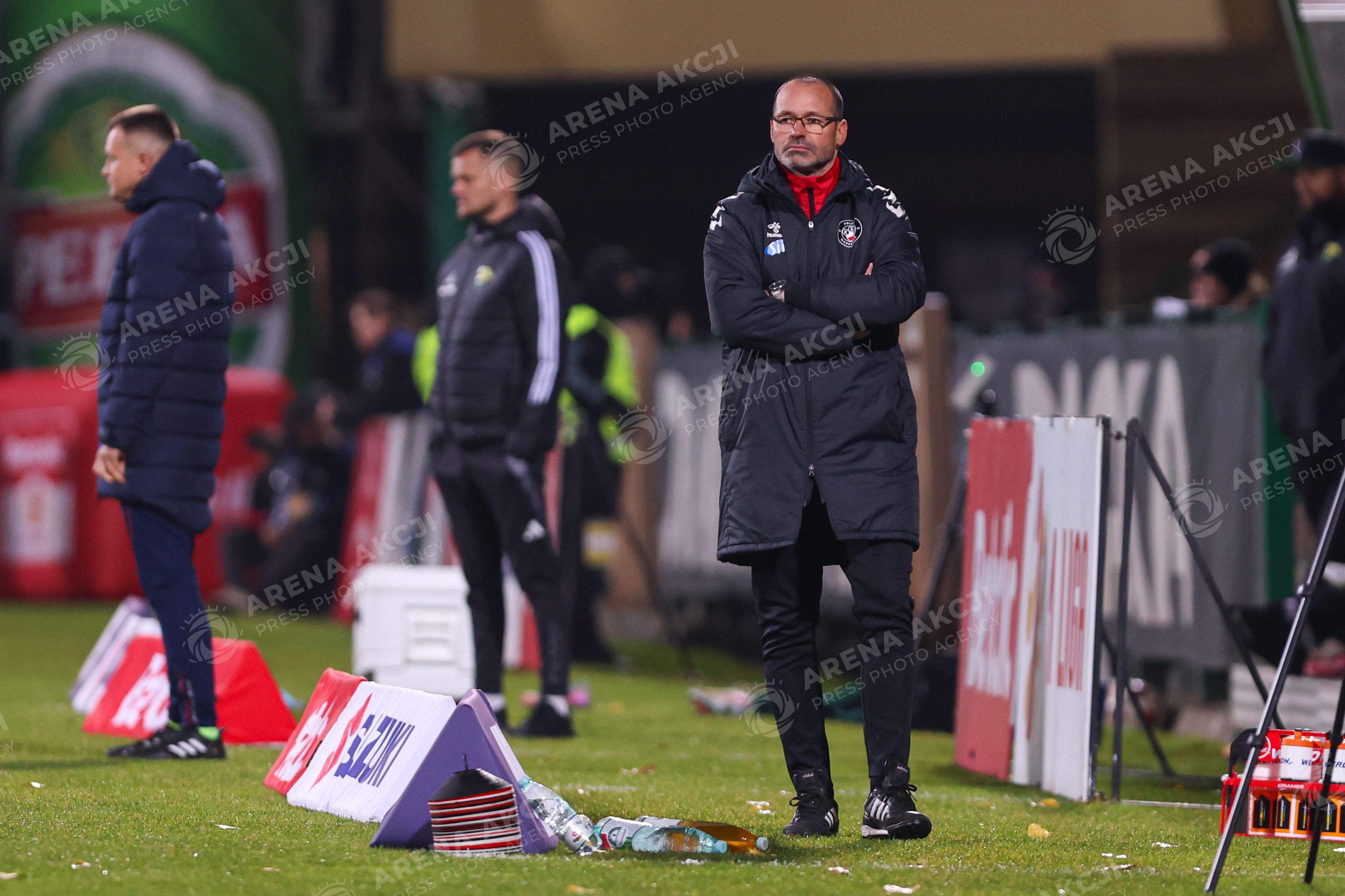 Leczna 31.10.2025. Pilka nozna Betclic I Liga sezon 2025/2026 kolejka 15 mecz: Gornik Leczna - Polonia Warszawa --- Football Betclic I League season 2025/2026 round 15 match: Gornik Leczna - Polonia Warsaw nz Trener Mariusz Pawlak Fot. Igor Jakubowski / Arena Akcji