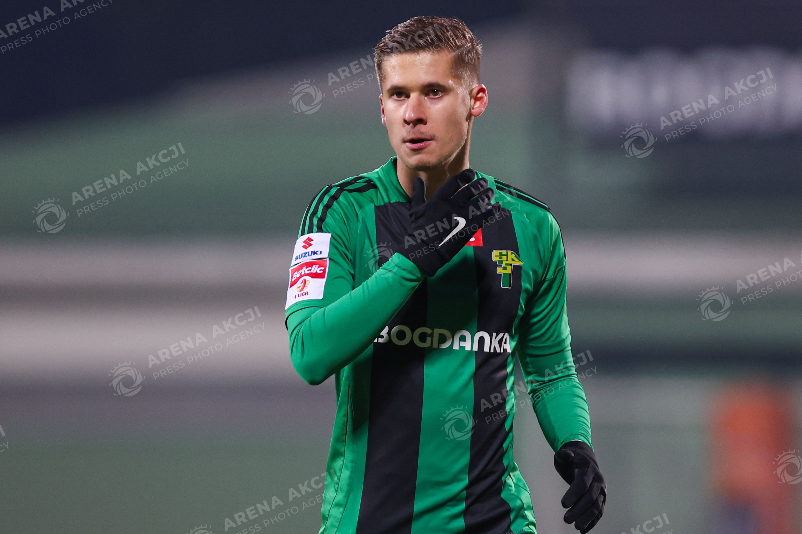 Leczna 31.10.2025. Pilka nozna Betclic I Liga sezon 2025/2026 kolejka 15 mecz: Gornik Leczna - Polonia Warszawa --- Football Betclic I League season 2025/2026 round 15 match: Gornik Leczna - Polonia Warsaw nz Jakub Bednarczyk Fot. Igor Jakubowski / Arena Akcji
