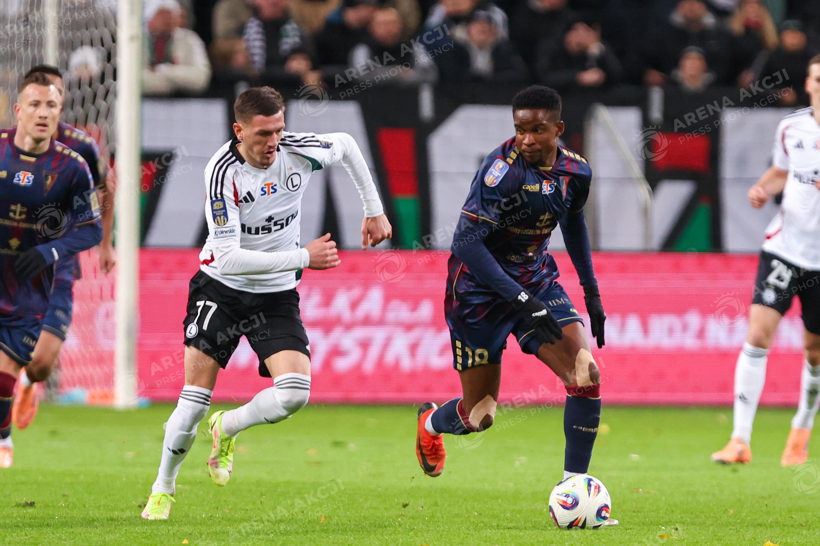 Warszawa 30.10.2025. Pilka nozna STS Puchar Polski sezon 2025/2026 runda 1/16 finalu mecz: Legia Warszawa - Pogon Szczecin --- Football STS Polish Cup season 2025/2026 round 116 match: Legia Warsaw - Pogon Szczecin nz Ermal Krasniqi Paul Mukairu Fot. Igor Jakubowski / Arena Akcji