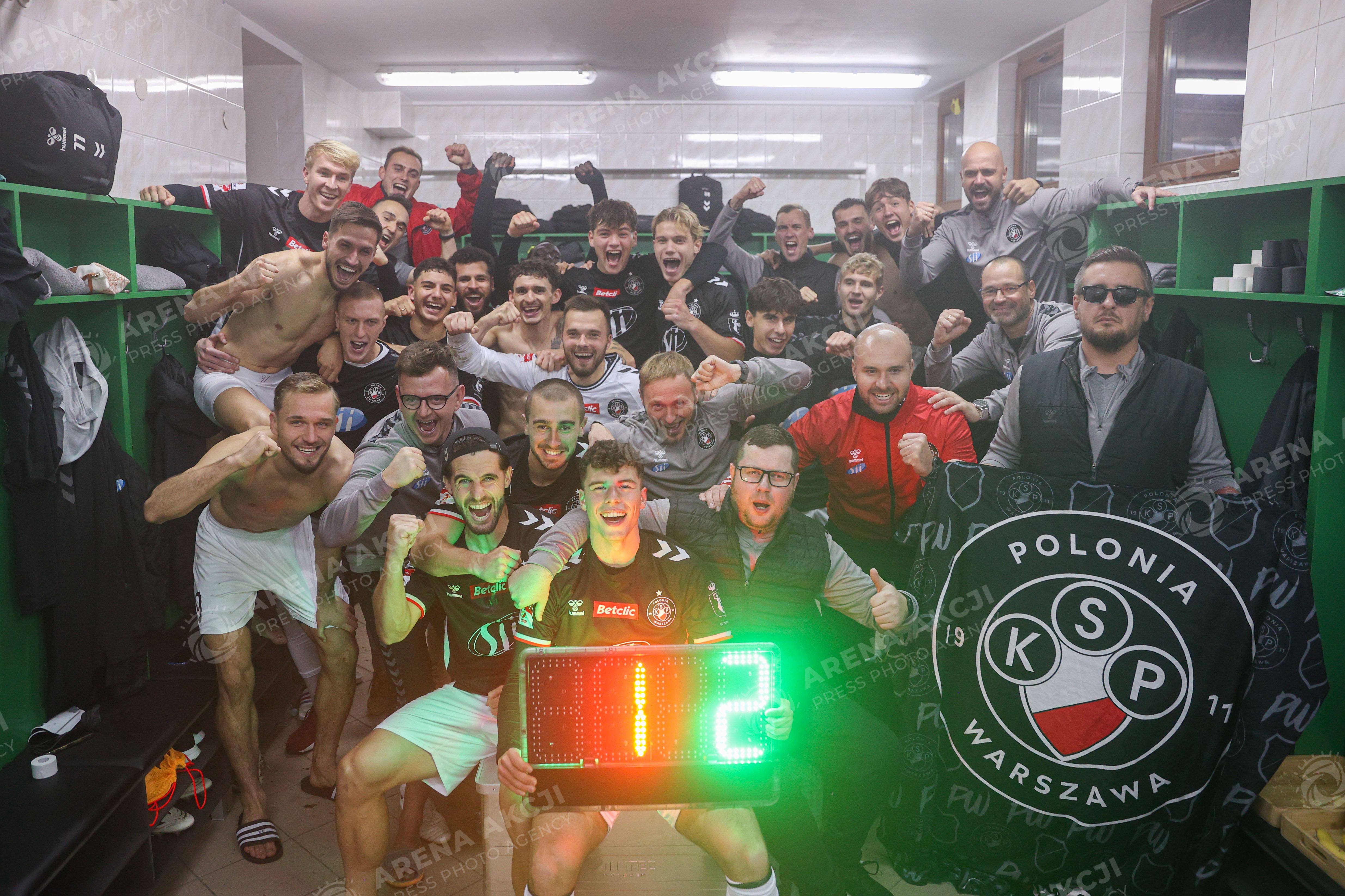 Leczna 31.10.2025. Pilka nozna Betclic I Liga sezon 2025/2026 kolejka 15 mecz: Gornik Leczna - Polonia Warszawa --- Football Betclic I League season 2025/2026 round 15 match: Gornik Leczna - Polonia Warsaw nz radosc w szatni Fot. Igor Jakubowski / Arena Akcji