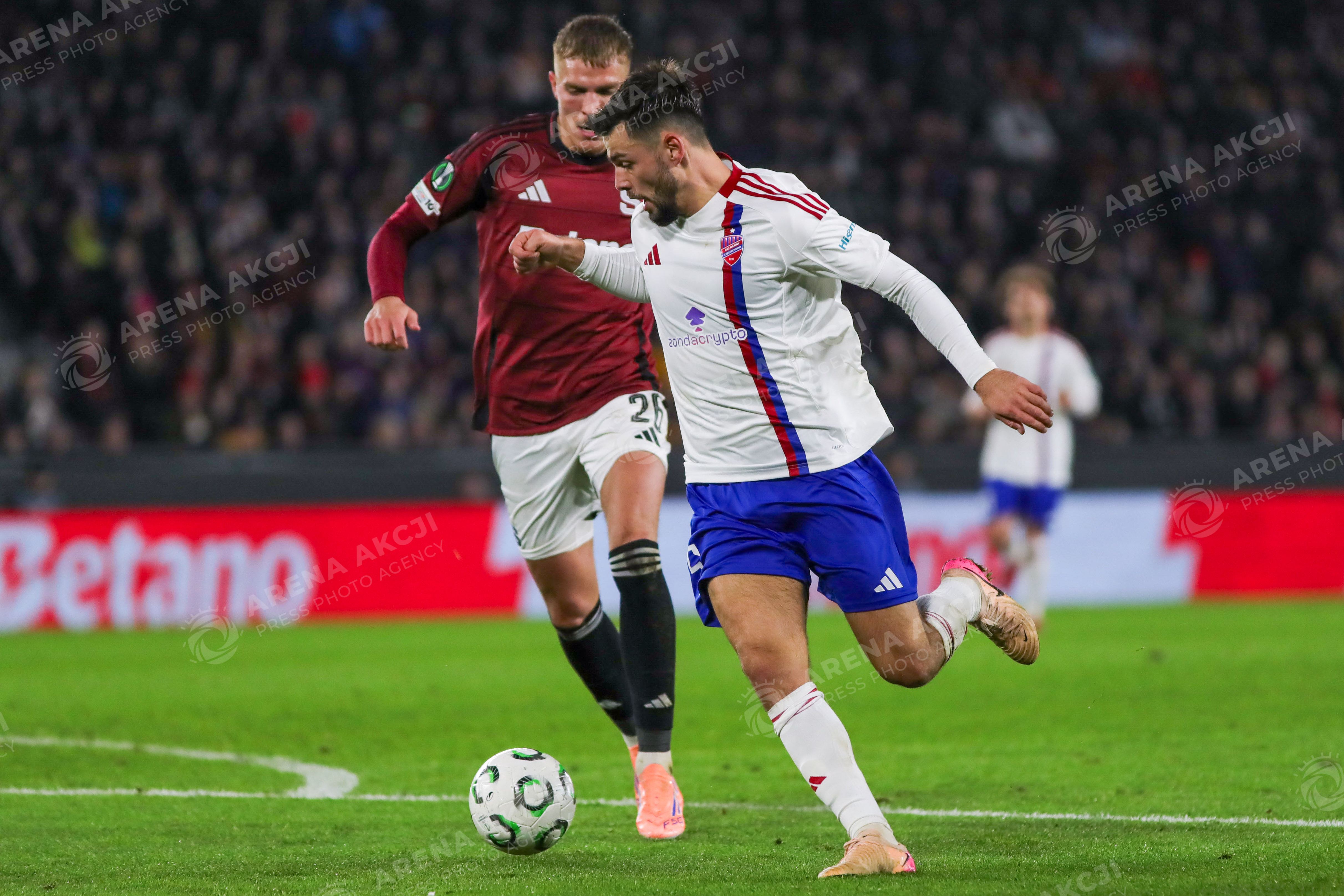 Praga 02.11.2025. Pilka nozna Liga Konferencji UEFA mecz : Sparta Praga - Rakow Czestochowa --- Football UEFA Conference League match : Sparta Prague - Rakow Czestochowa nz Marko Bulat Patrik Vydra Fot. Kacper Staniec / Arena Akcji
