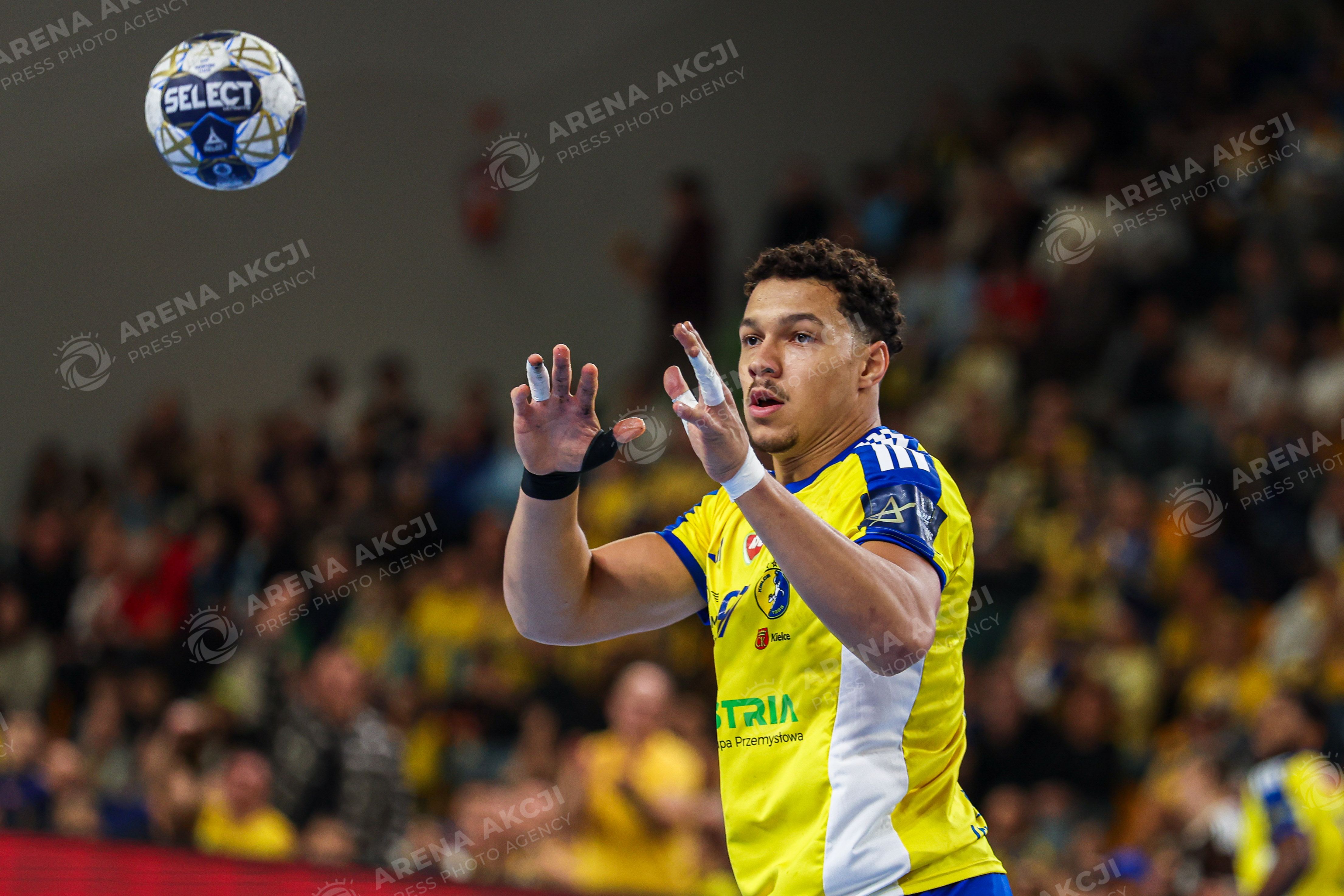 Kielce 13.11.2025. Pilka reczna EHF Liga Mistrzow sezon 2025/2026 kolejka 7 mecz: Industria Kielce - Aalborg Handbold --- Handball EHF Champions League season 2025/2026 round 7 match: Industria Kielce - Aalborg Handbold nz theo monar Fot. Igor Jakubowski / Arena Akcji