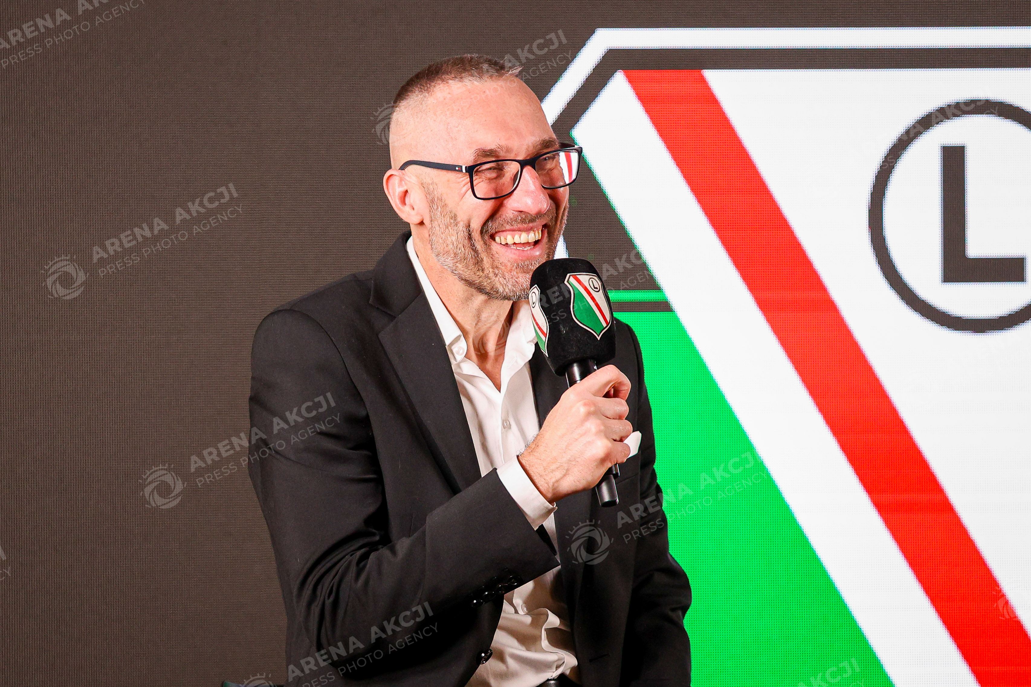 Warszawa 19.12.2025. Briefing Prasowy. Prezentacja nowego trenera Legii Warszawa Marka Papszuna --- Press briefing. Presentation of new Legia Warsaw Head Coach Marek Papszun nz Marek Papszun Marcin Herra Fot. Igor Jakubowski / Arena Akcji