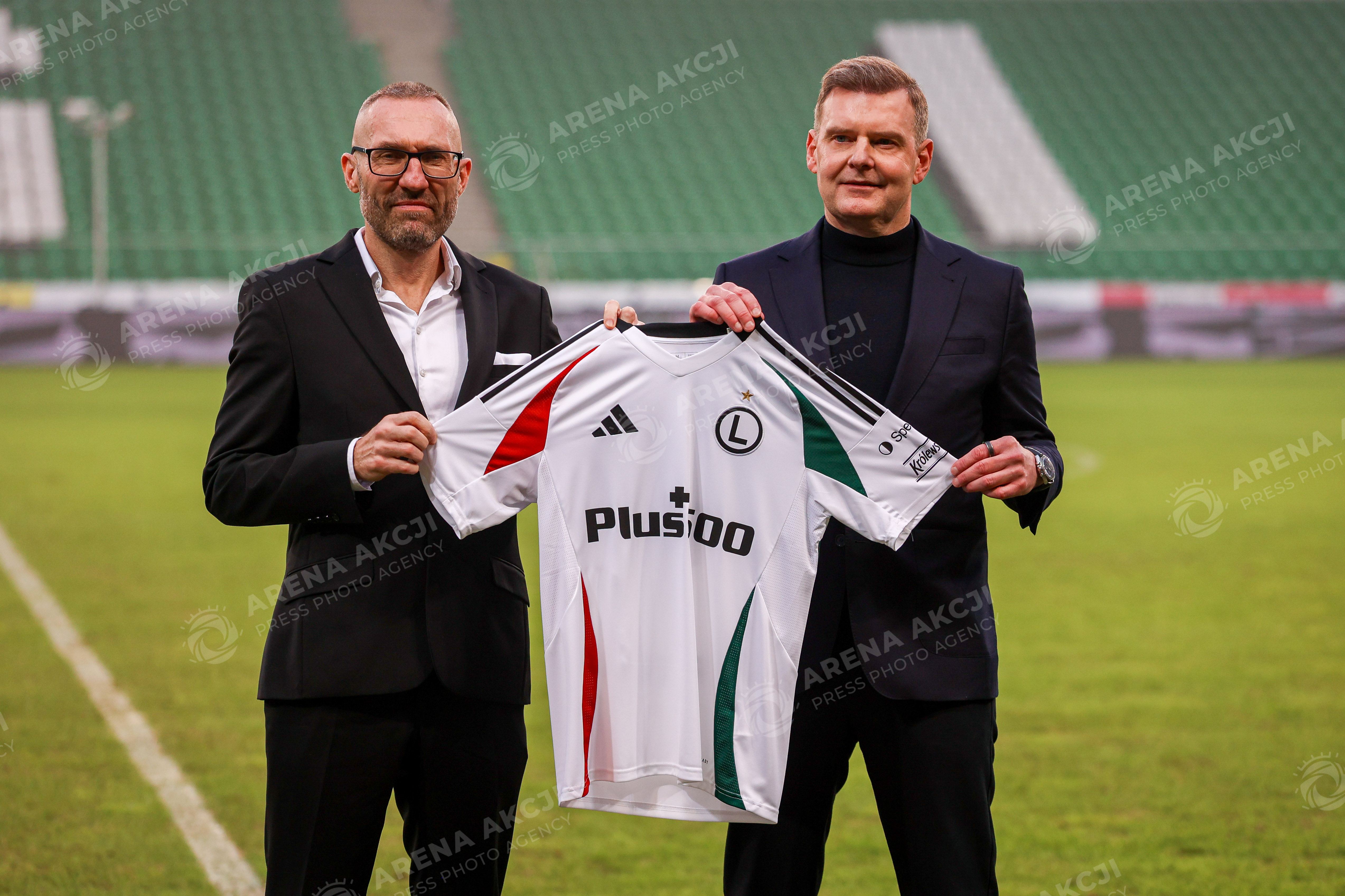 Warszawa 19.12.2025. Briefing Prasowy. Prezentacja nowego trenera Legii Warszawa Marka Papszuna --- Press briefing. Presentation of new Legia Warsaw Head Coach Marek Papszun nz Marek Papszun Marcin Herra Fot. Igor Jakubowski / Arena Akcji