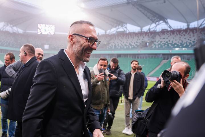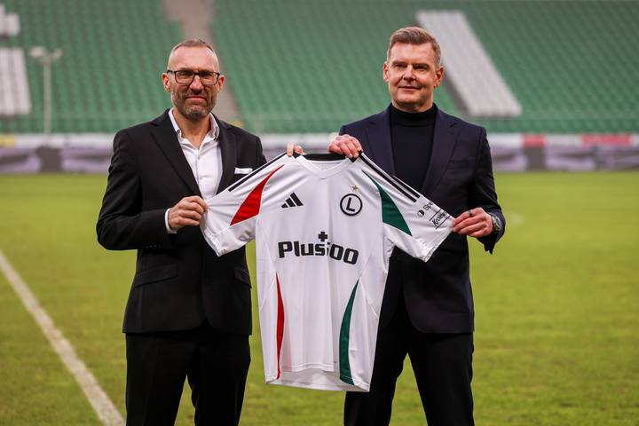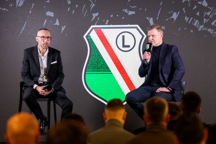 Warszawa 19.12.2025. Briefing Prasowy. Prezentacja nowego trenera Legii Warszawa Marka Papszuna --- Press briefing. Presentation of new Legia Warsaw Head Coach Marek Papszun nz Marek Papszun Marcin Herra Fot. Igor Jakubowski / Arena Akcji
