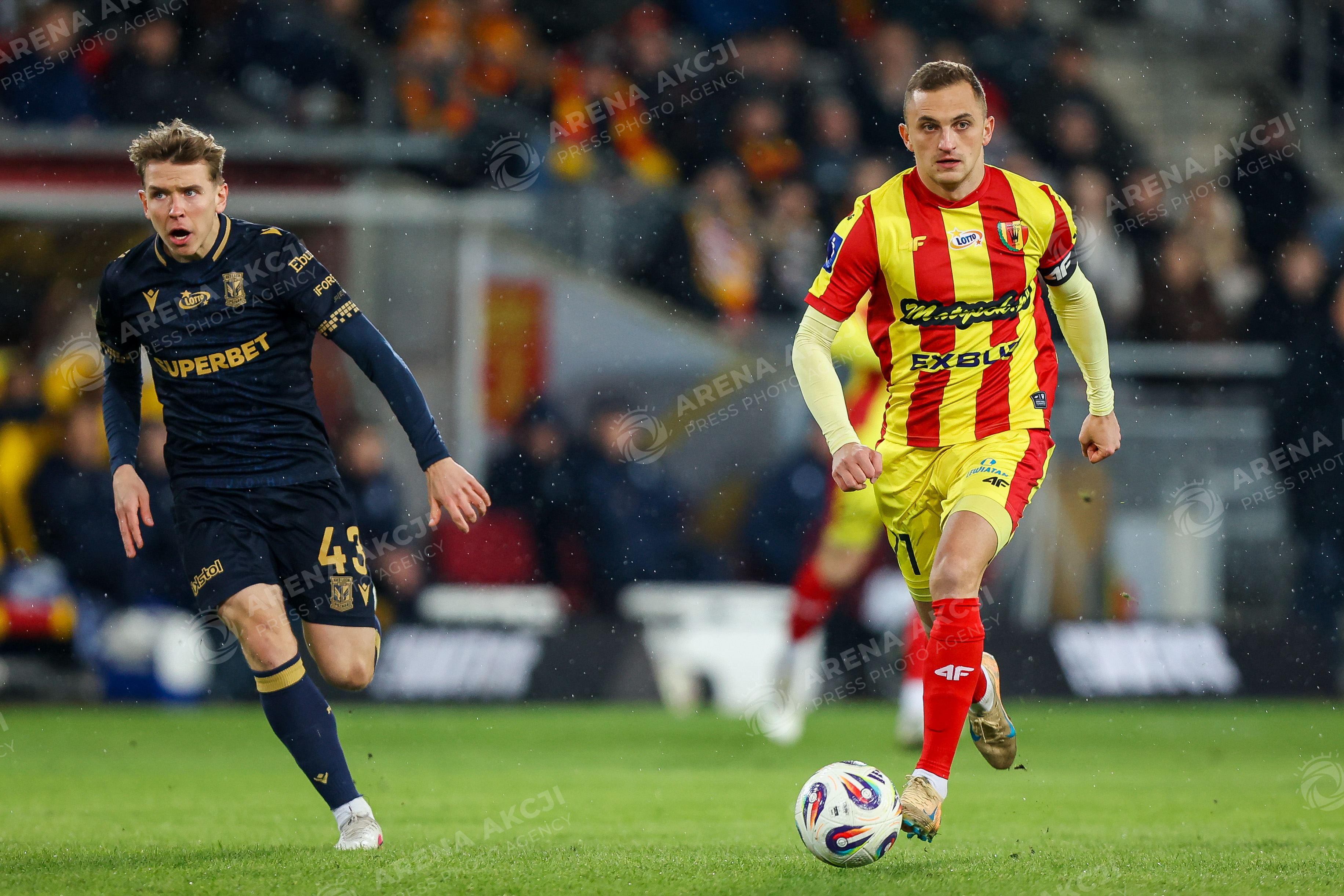 Kielce 22.02.2026. Pilka nozna PKO BP Ekstraklasa sezon 2025/2026 kolejka 22 mecz Korona Kielce - Lech Poznan --- Football Soccer Polish first division. match between Korona Kielce and Lech Poznan in Kielce, Poland. Persons shown : Wiktor Dlugosz Antoni Kozubal Fot. Igor Jakubowski / Arena Akcji